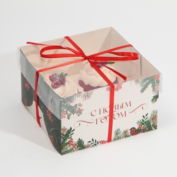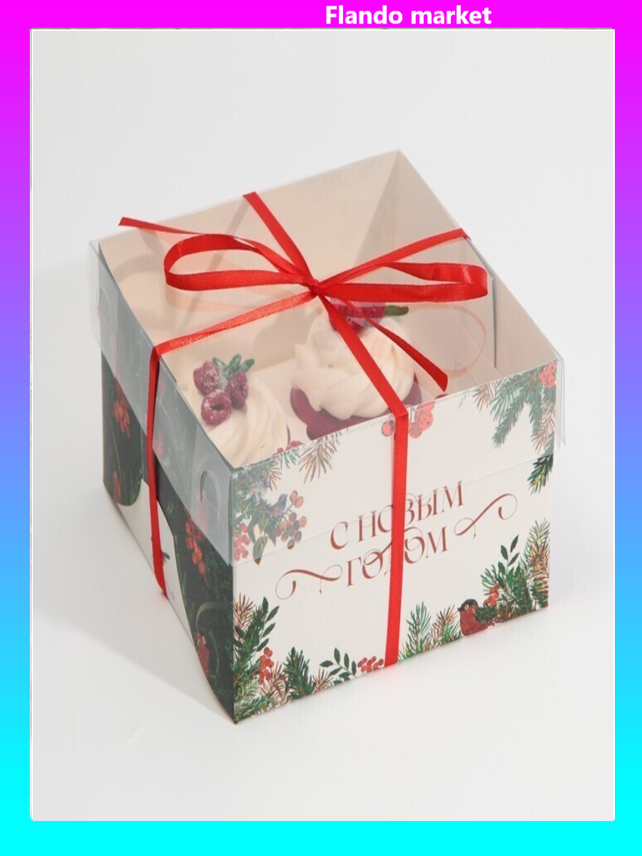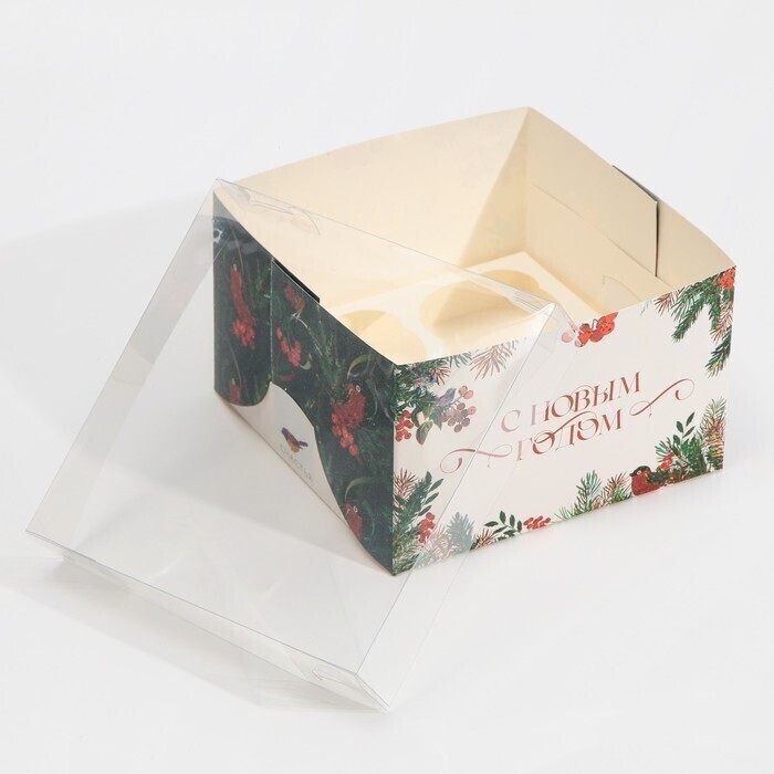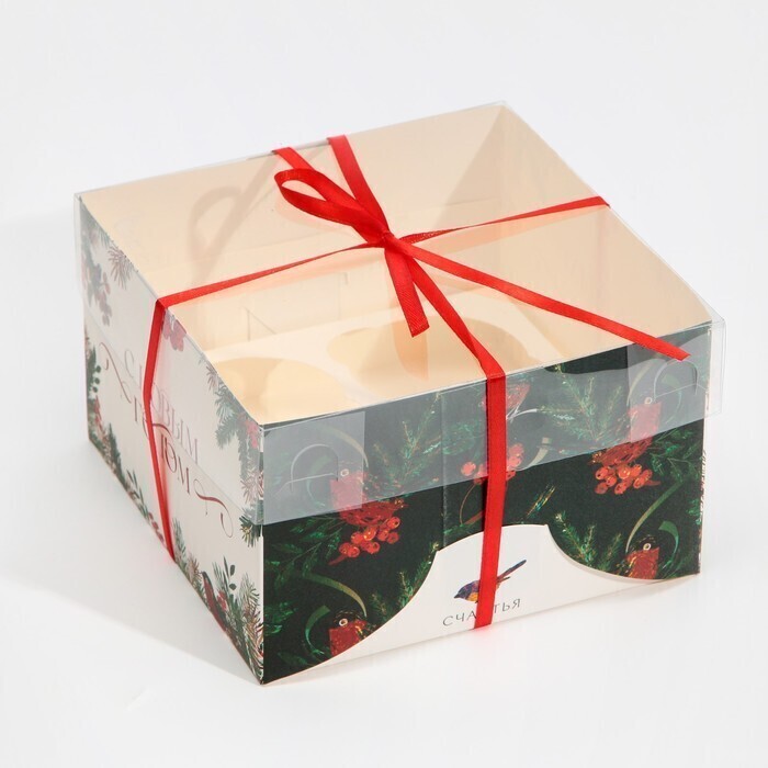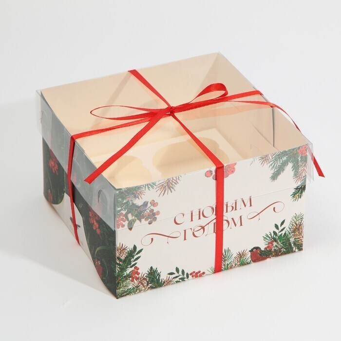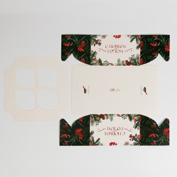 !09 Коробка (набор 3 штуки) для капкейка на 4 ячейки «Ботаника», 16 × 16 × 10 см.