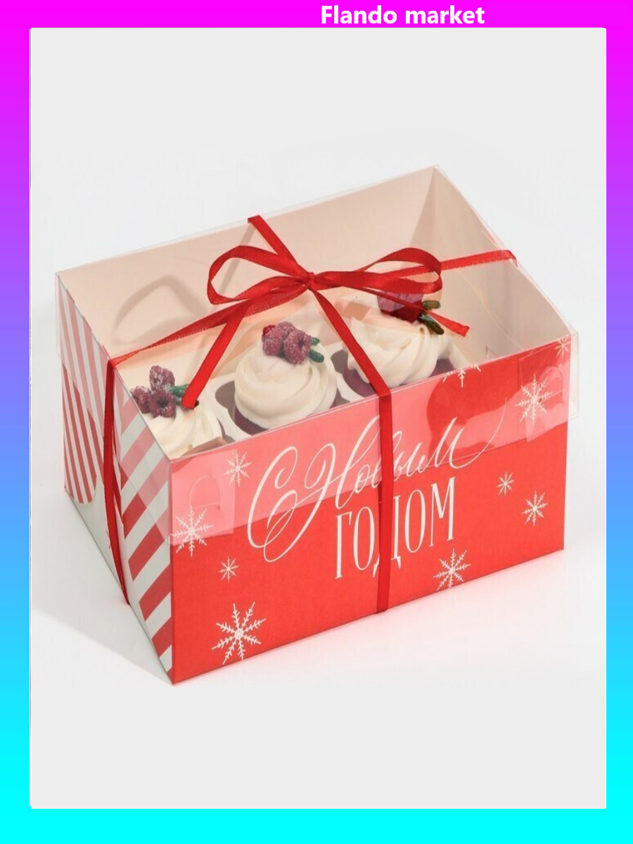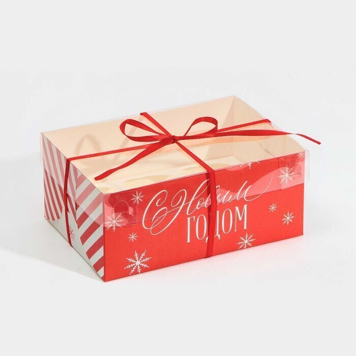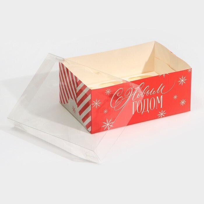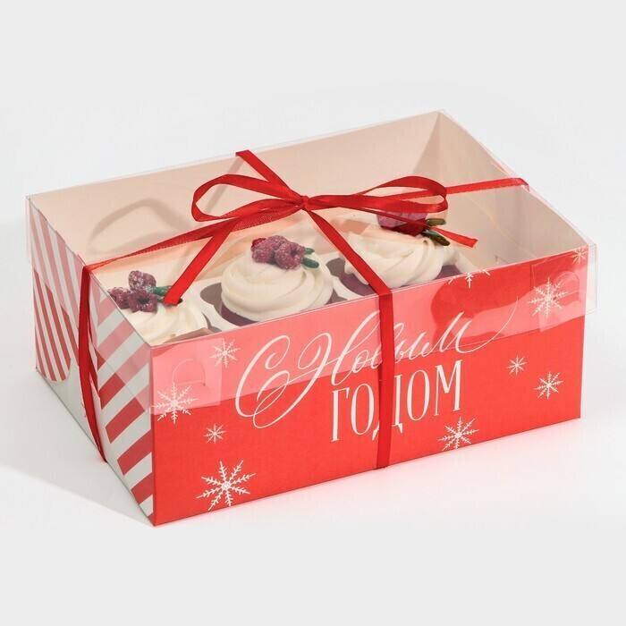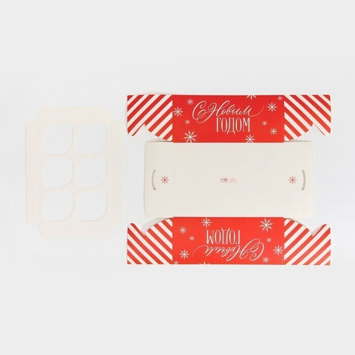 !09 Коробка (набор 5 штук) для капкейка на 6 ячеек «Поздравляю с НГ», 23 × 16 × 10 см.