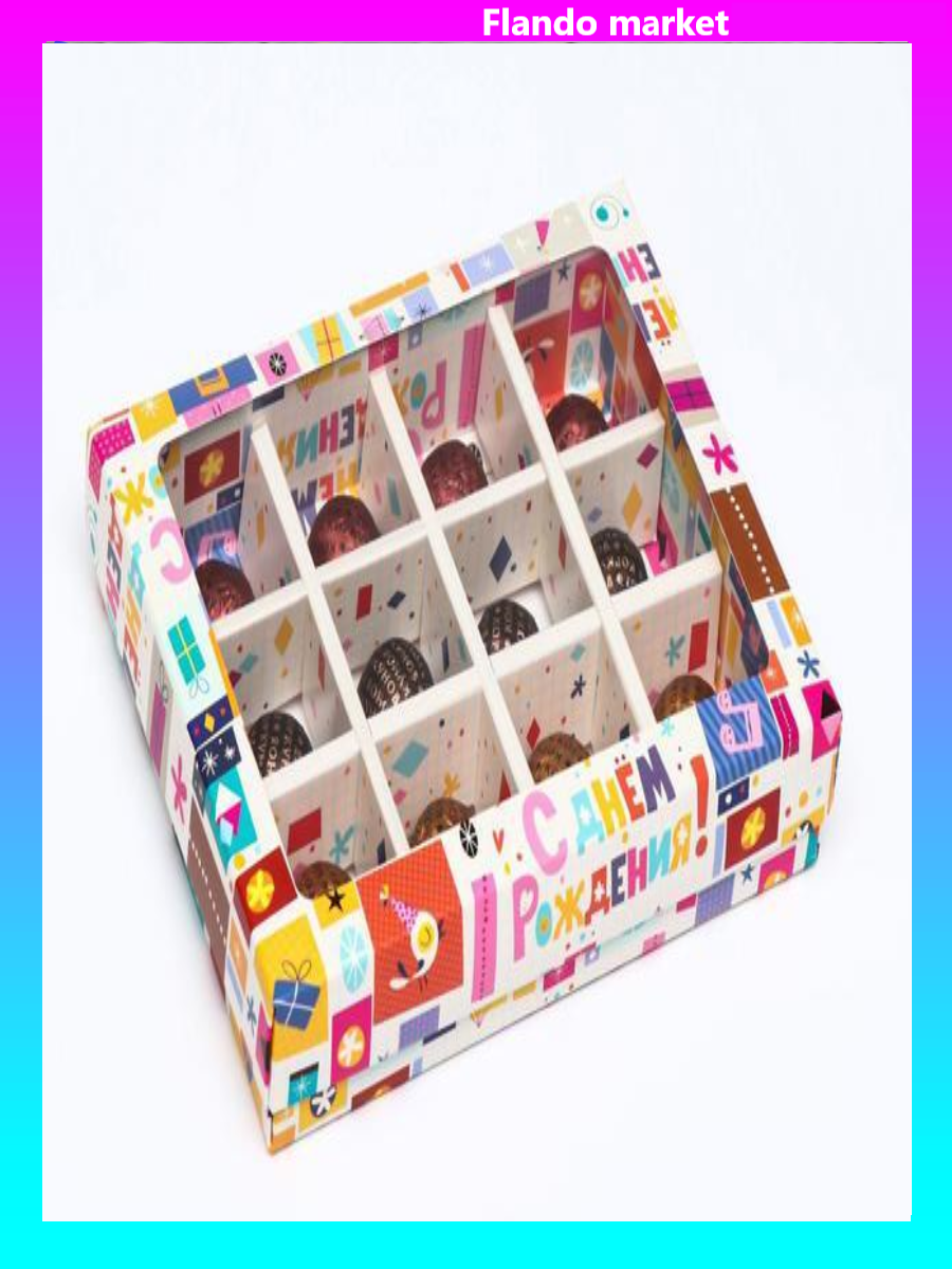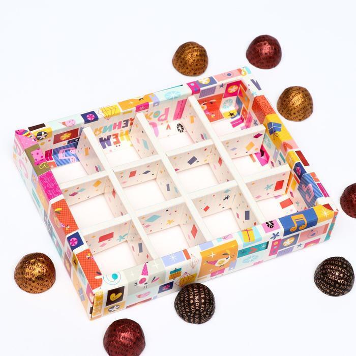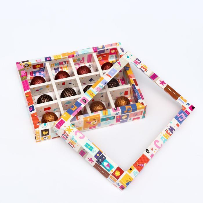 !09 Коробка (набор 2 штуки) для конфет на 12 штук "С днем рождения" 19 х 15 х 3,6 см.