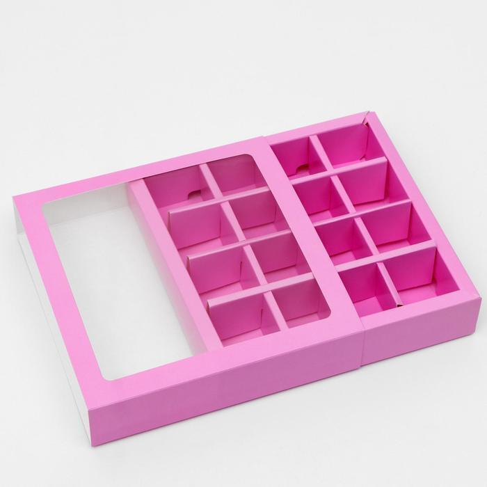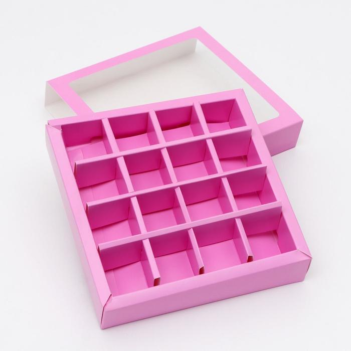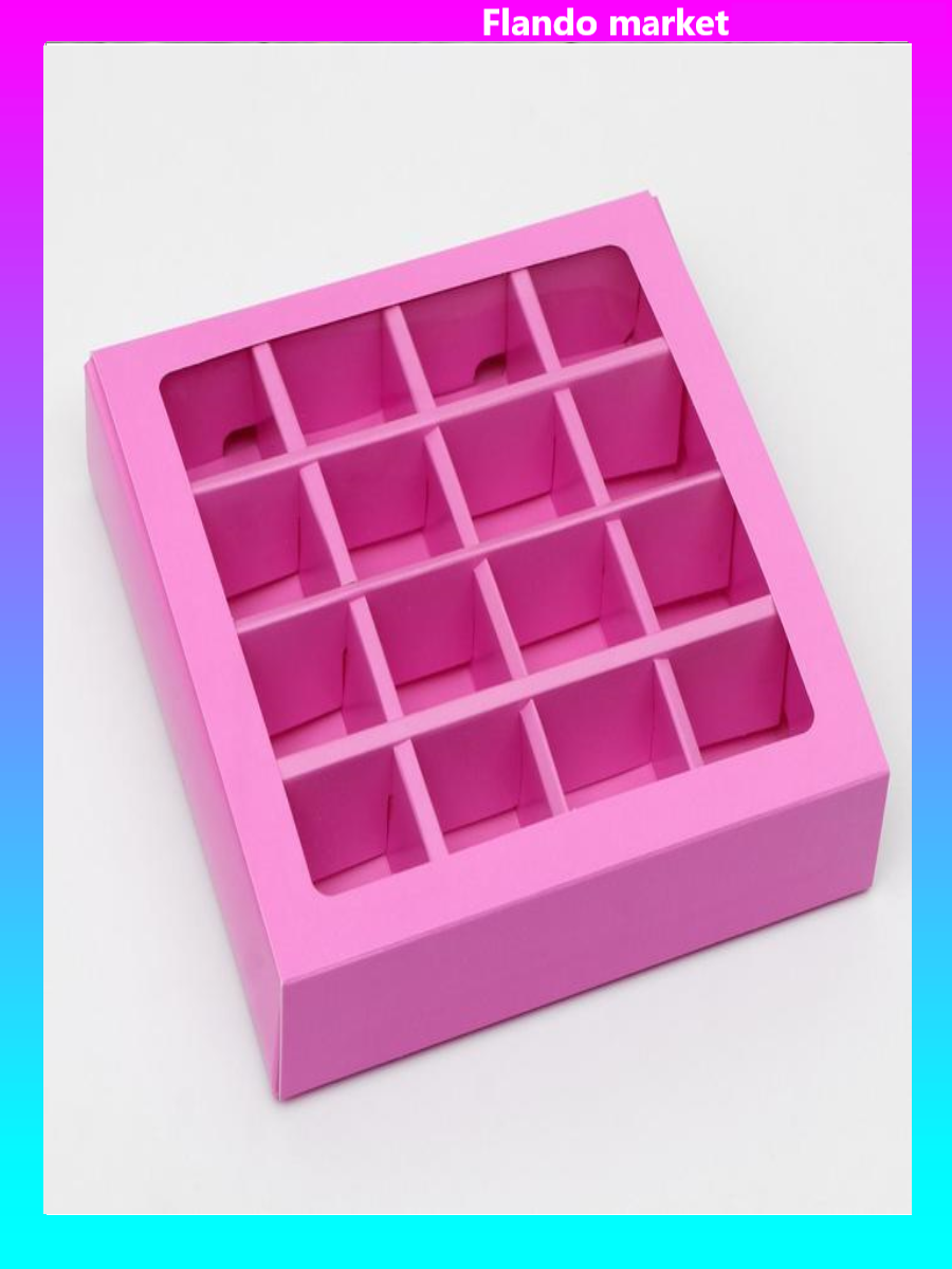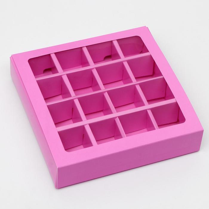 !09 Коробка (набор 4 штуки) для конфет на 16 штук сиреневая, 17,7 х 17,7 х 3,8 см.