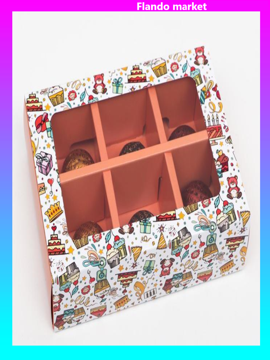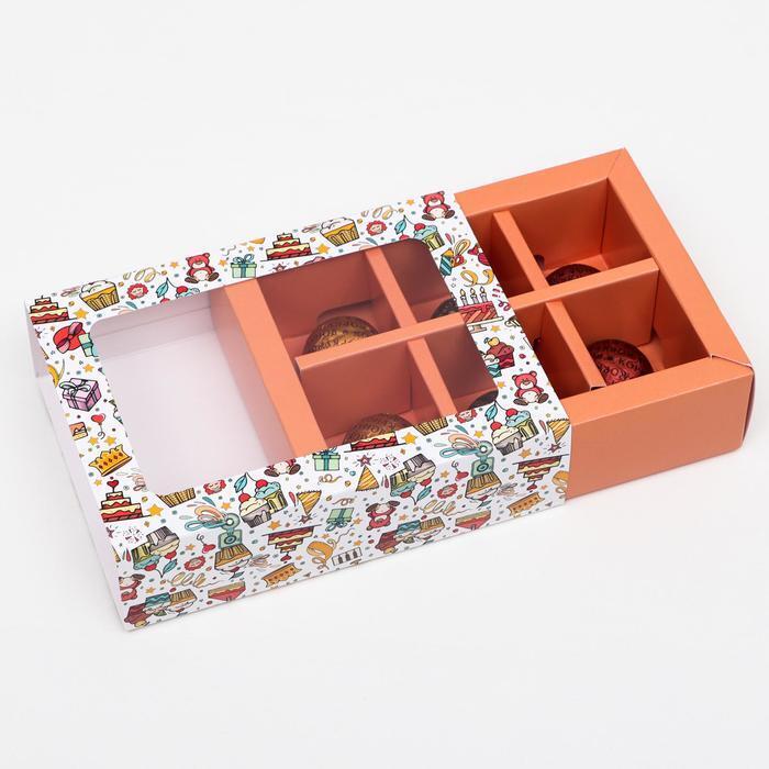 !09 Коробка (набор 4 штуки) для конфет на 6 штук "Детский день рождения" 13,7 х 9,85 х 3,86 см.