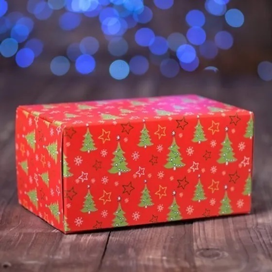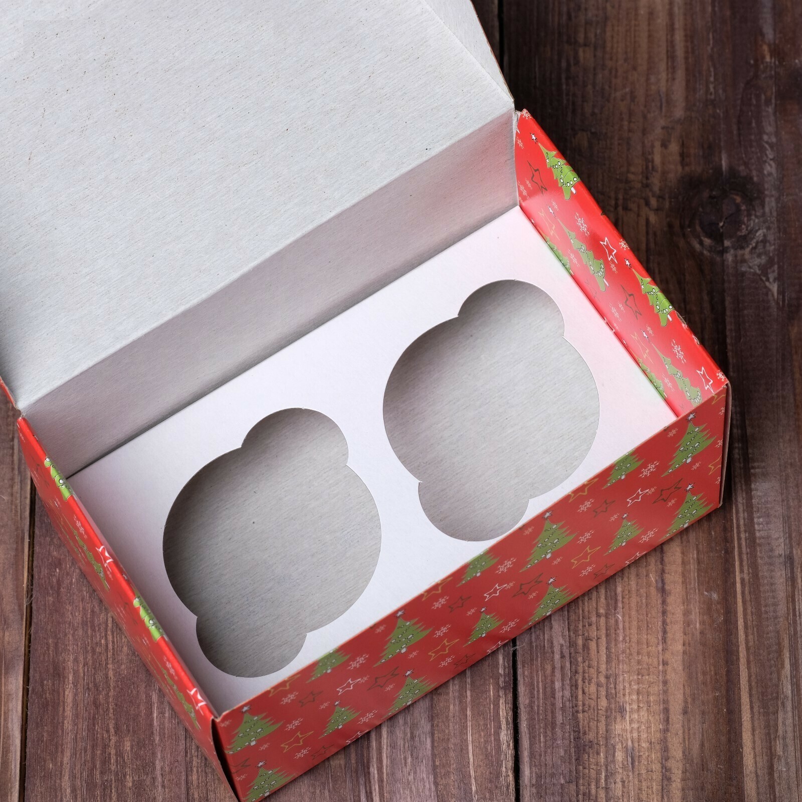 !09 Коробка на 2 капкейка /комплект 6 штук/ "Ёлки красные", 16 х 10 х 8 см.