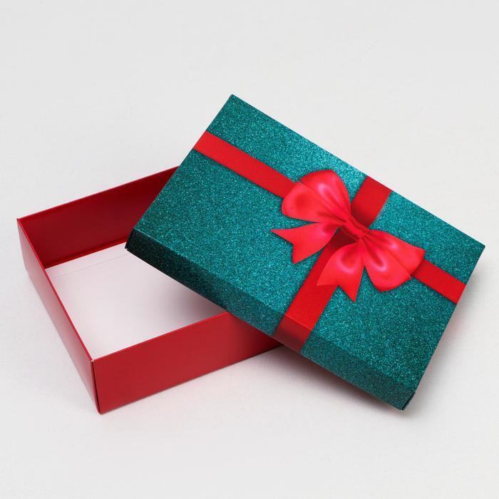 !09 Коробка подарочная (набор 3 штуки) «Бант», зеленый-красный, 21 х 15 х 5 см