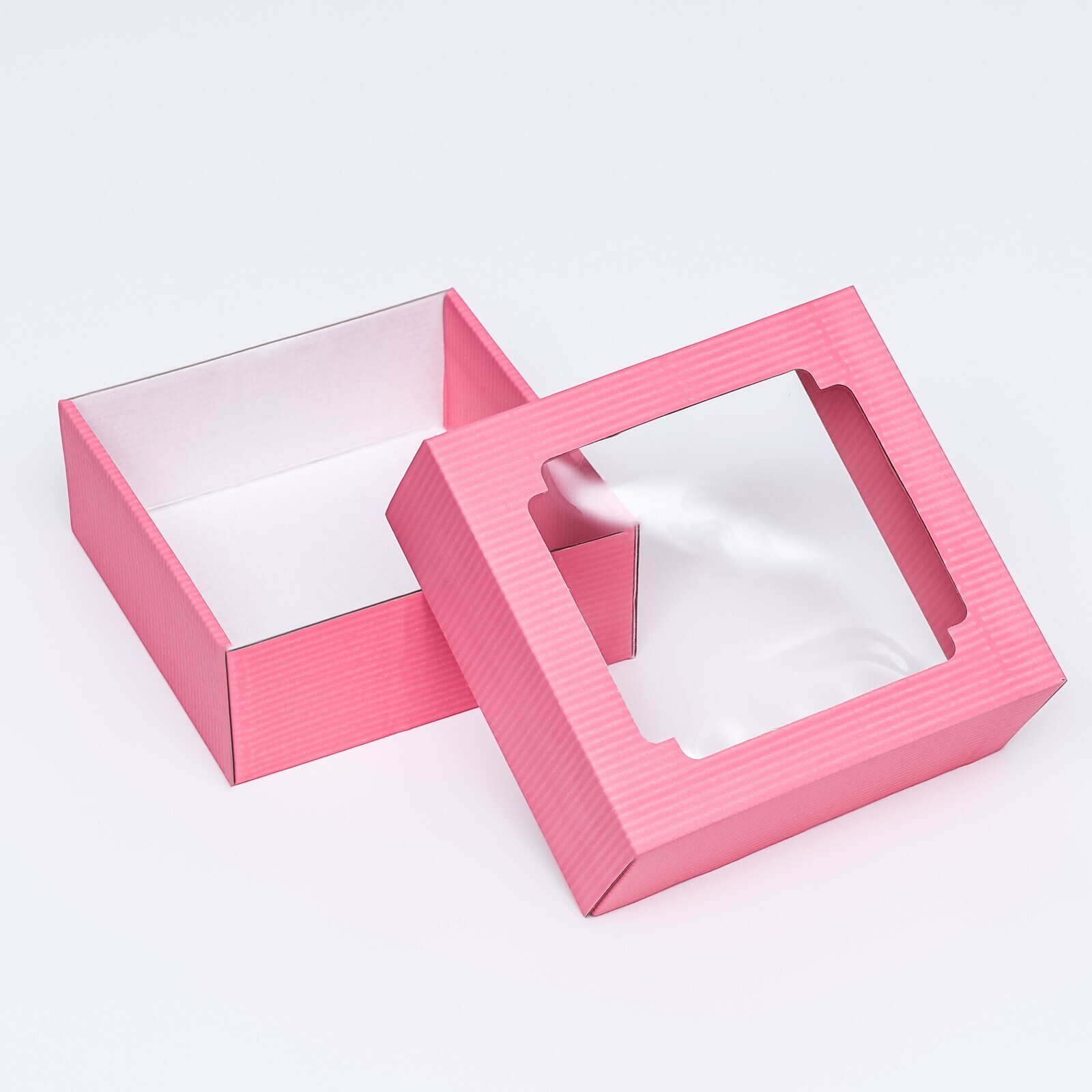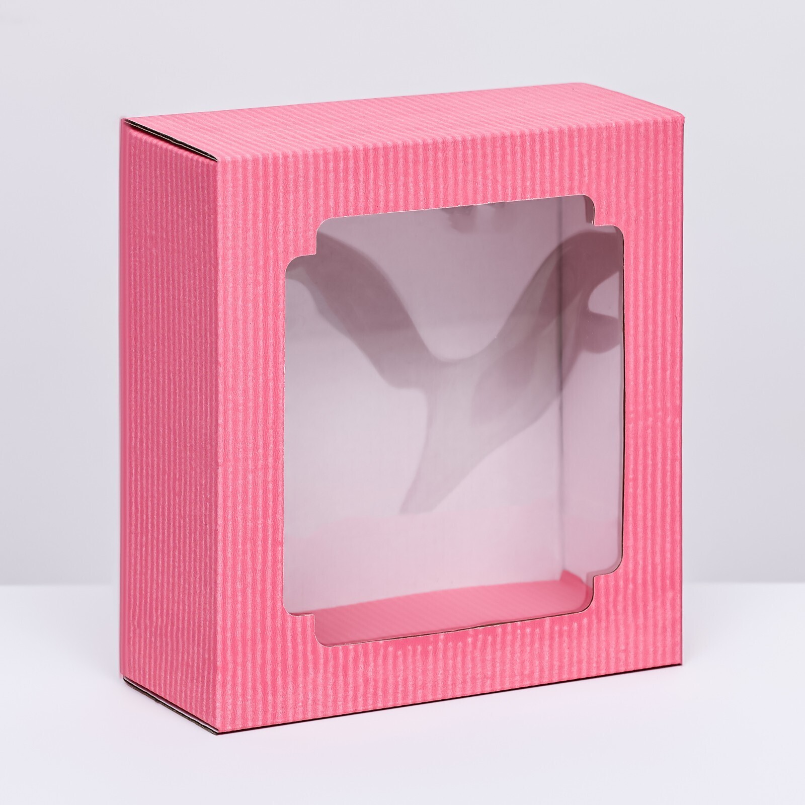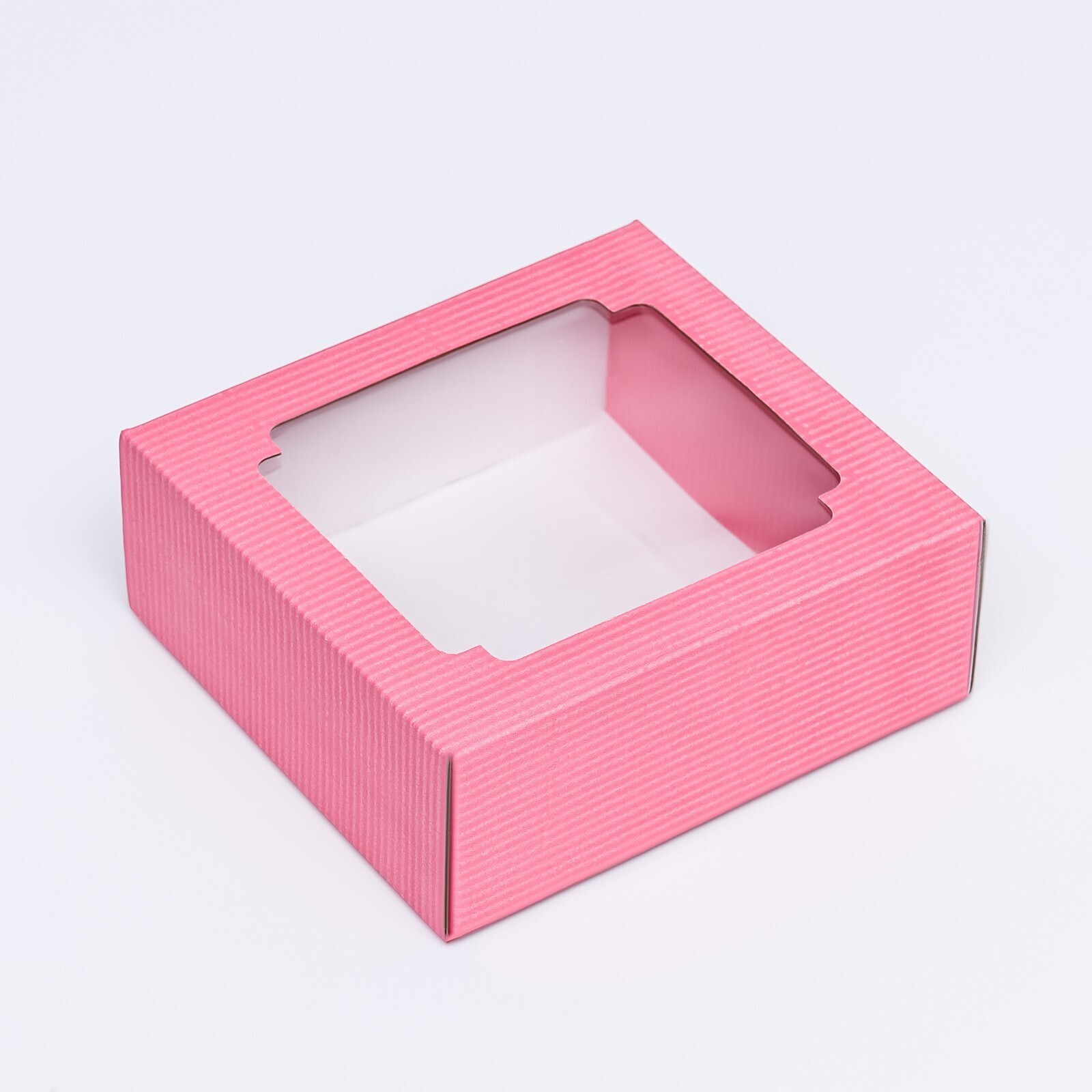 !09 Коробка подарочная (набор 5 штук) крышка-дно, с окном 14,5 х 14,5 х 6 см. цвет розовый