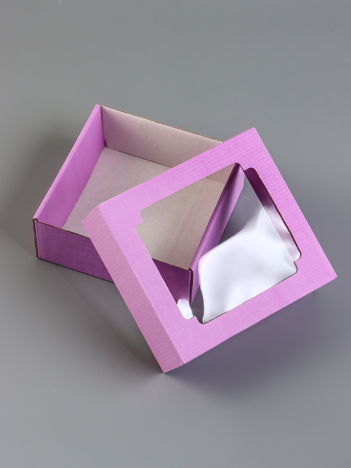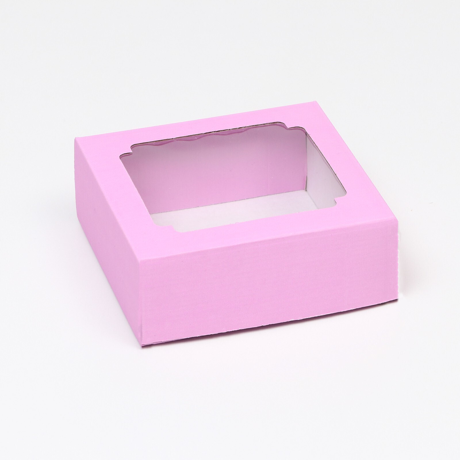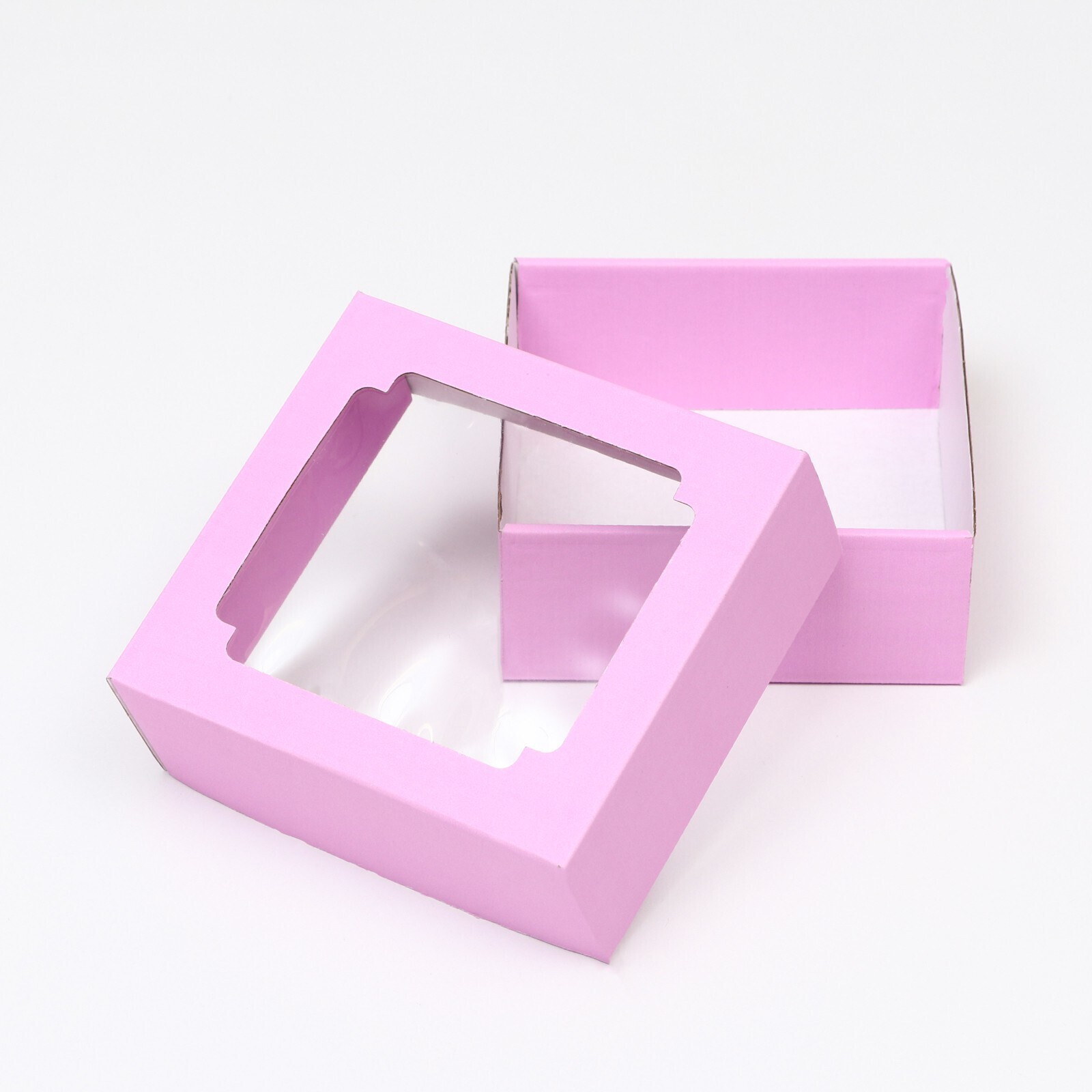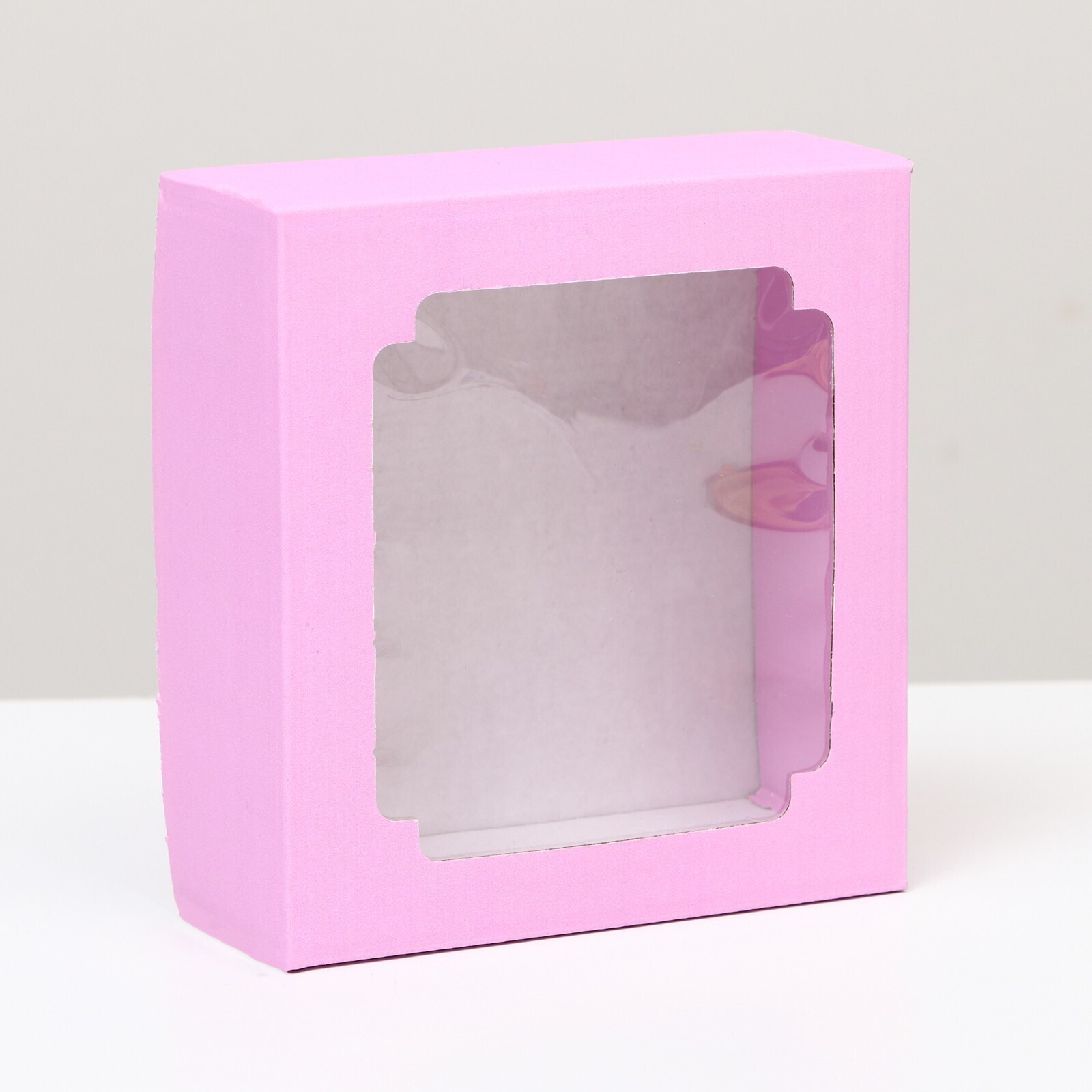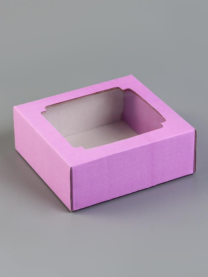 !09 Коробка подарочная (набор 5 штук) крышка-дно, с окном 14,5 х 14,5 х 6 см цвет сиреневый