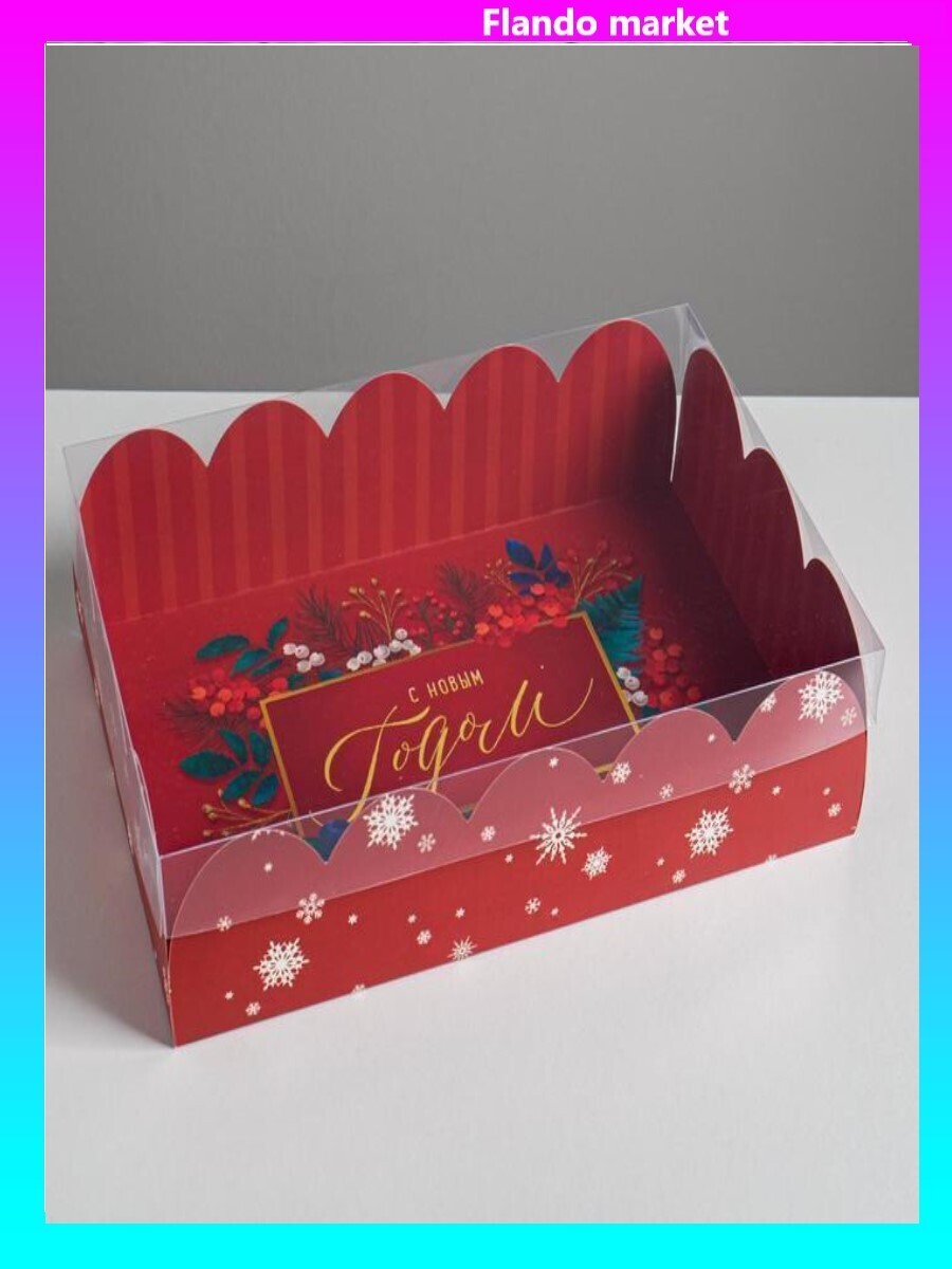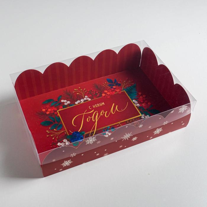 !09 Коробка подарочная с PVC крышкой (набор 4 штуки) «С Новым годом», 20 × 30 × 8 см.
