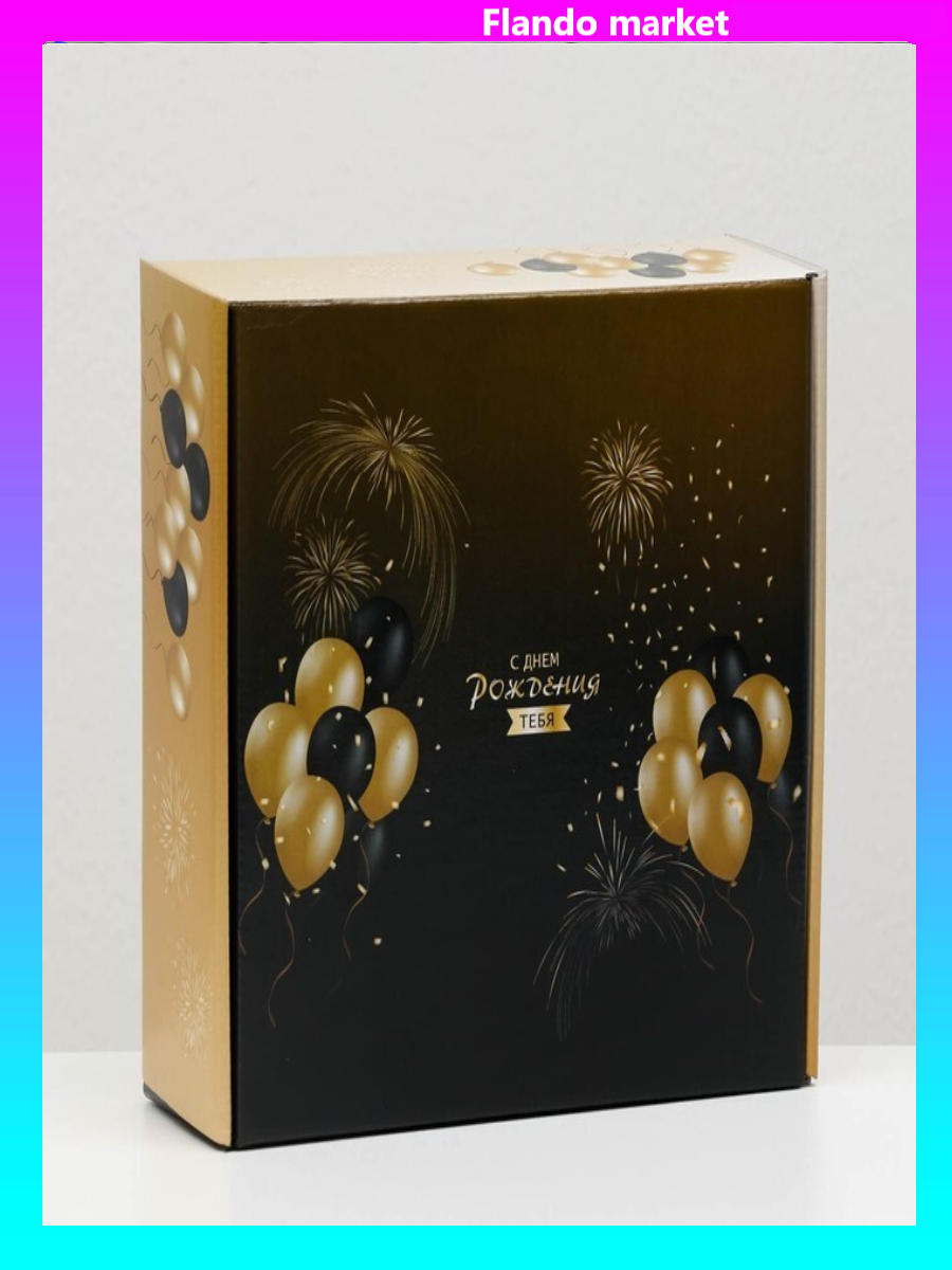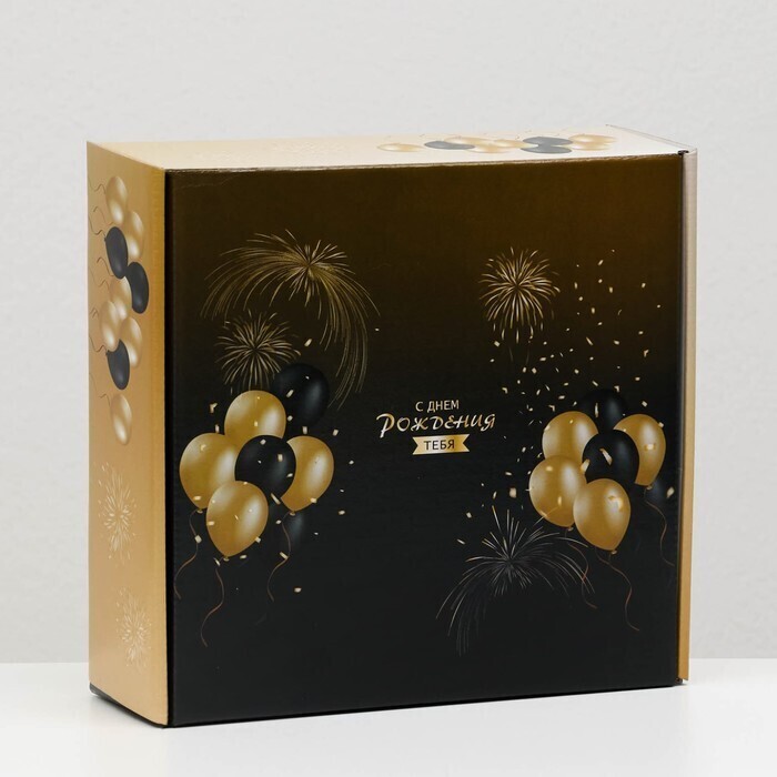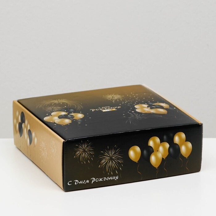 !09 Коробка (набор 2 штуки) самосборная "С днём рождения тебя!", 23 х 23 х 8 см.