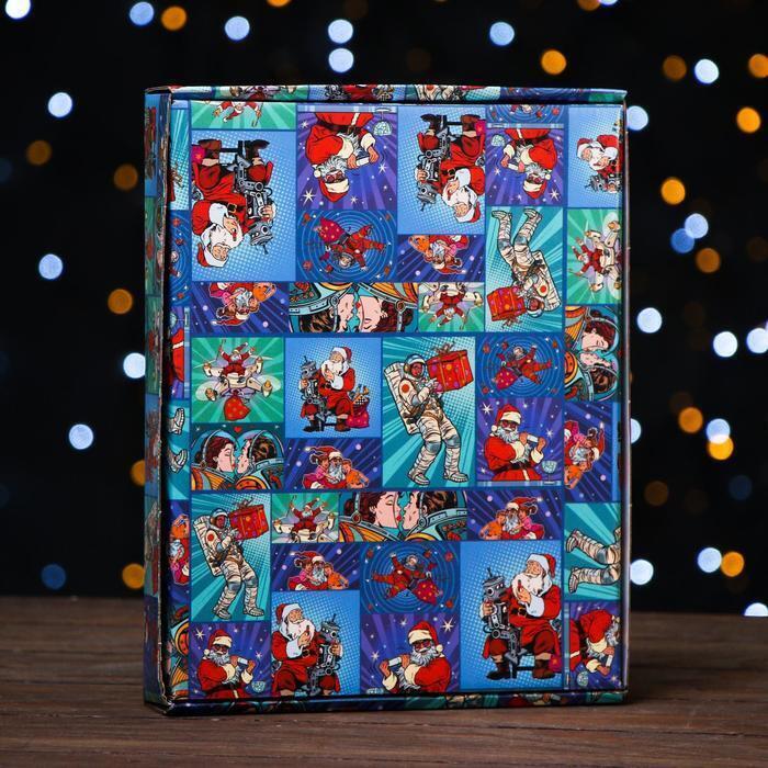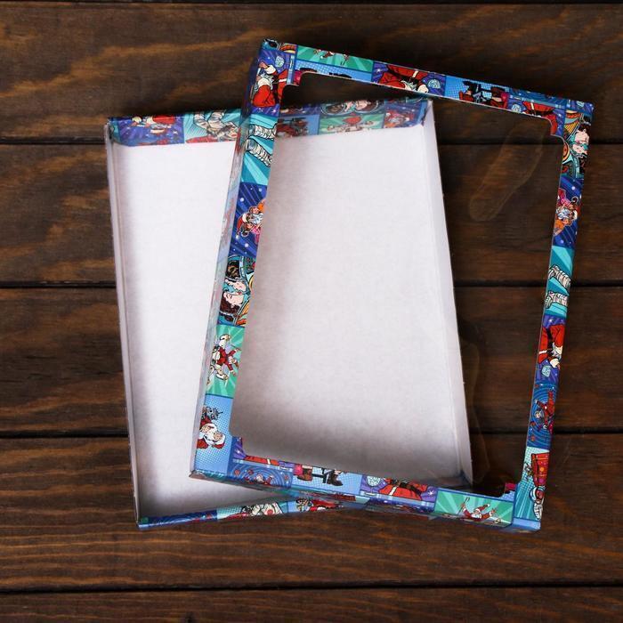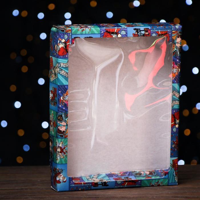 !09 Коробка сборная крышка-дно с окном, (набор 2 штуки) "Pop-art улётный новый год", 26 х 21 х 4 см.