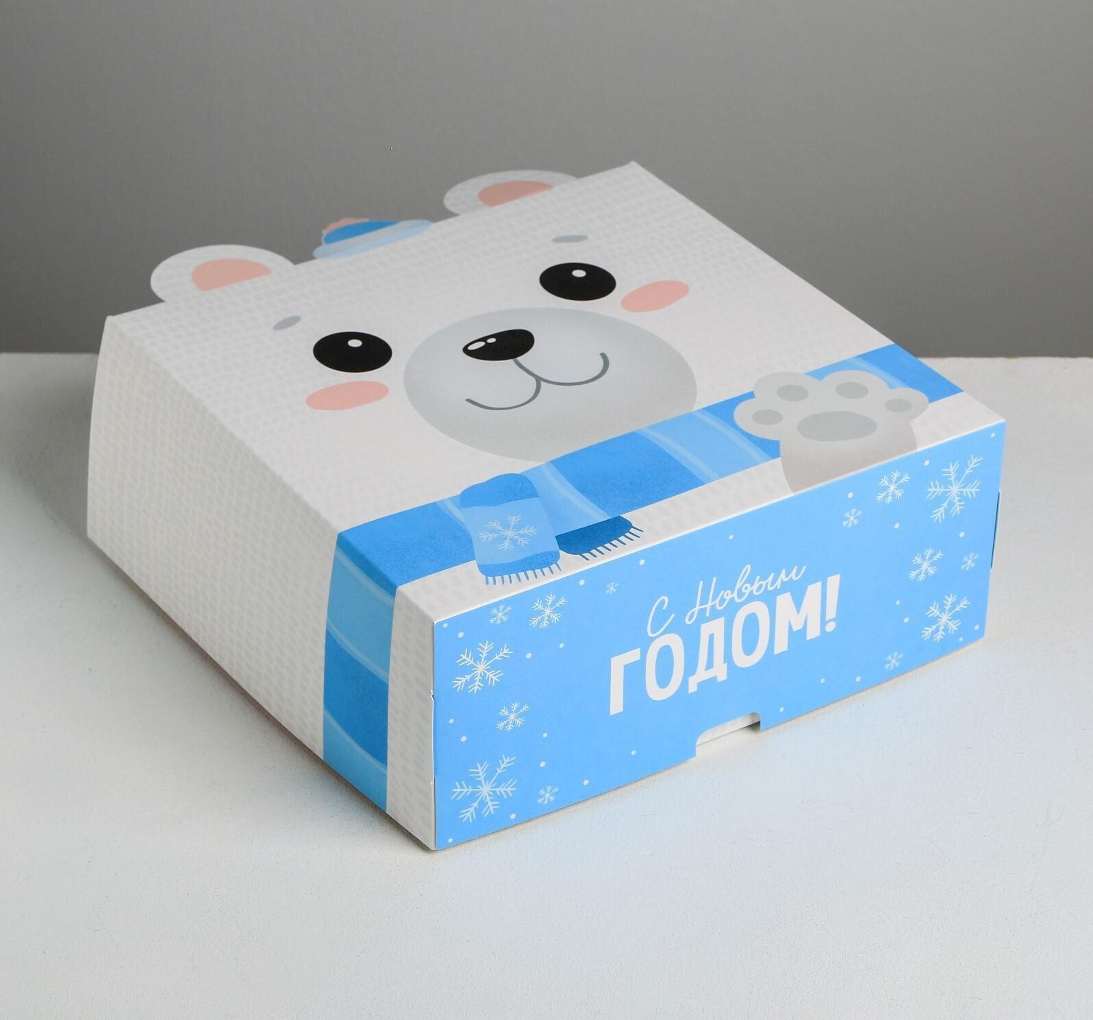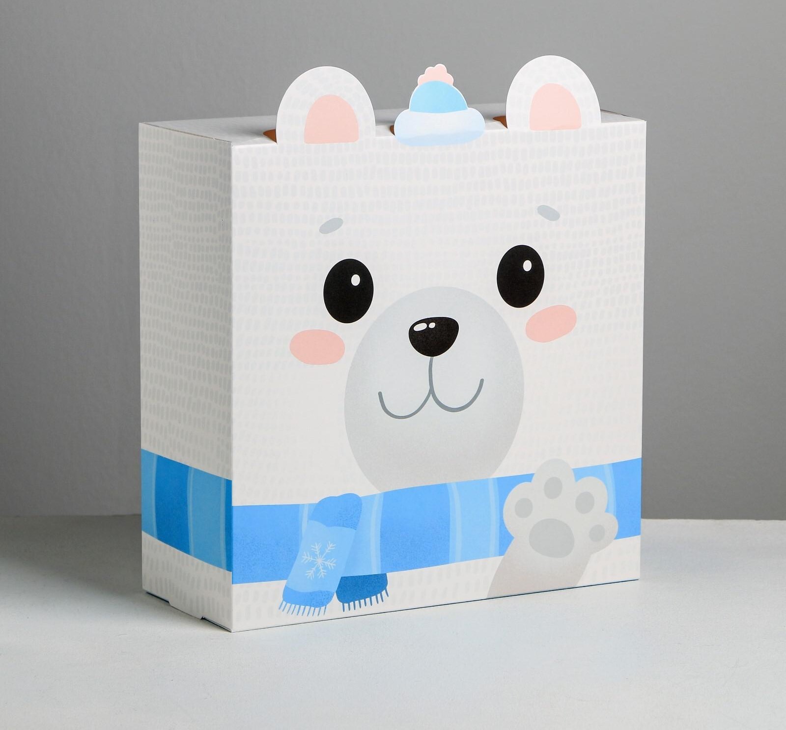!09 Коробка складная (набор 5 штук) « С Новым Годом!Медвежонок», 25 х 25 х 10 см.