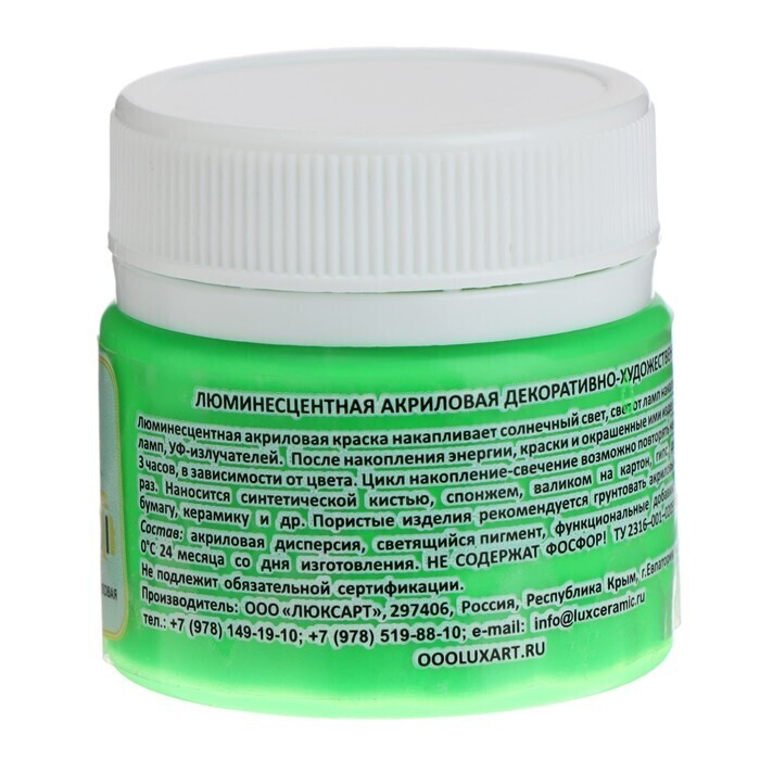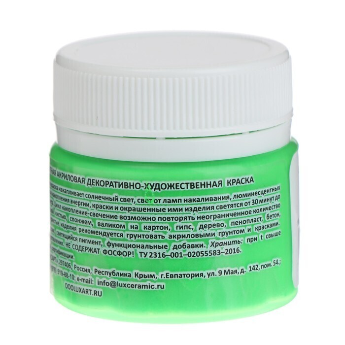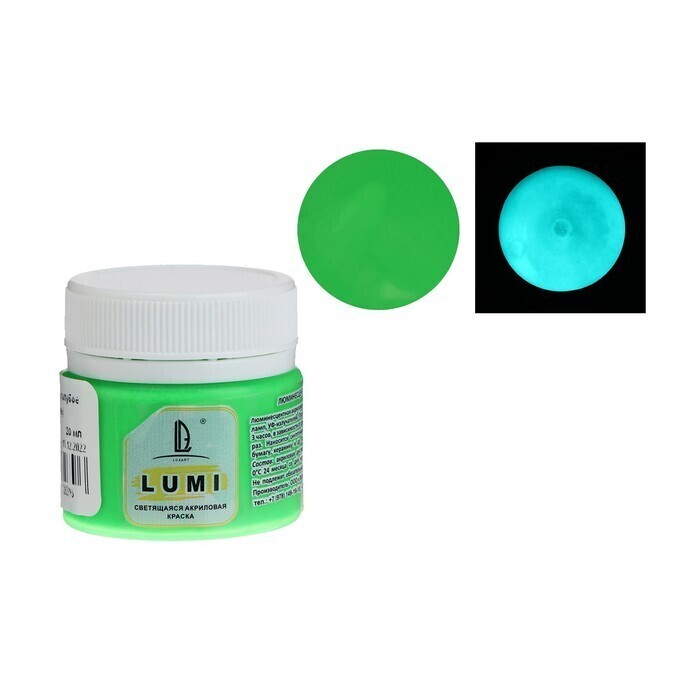 !09 Краска акриловая люминесцентная (светящаяся в темноте), LUXART Lumi, 20 мл, зелёный, небесно-голубое свечение (L7V20)
