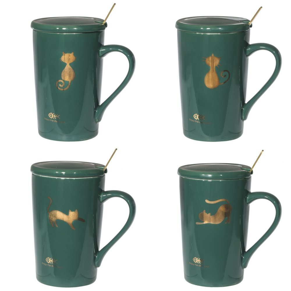 !09 Кружка без крышки с ложкой, 400 мл, 11,5*8*13 см, 1шт из 4-х видов