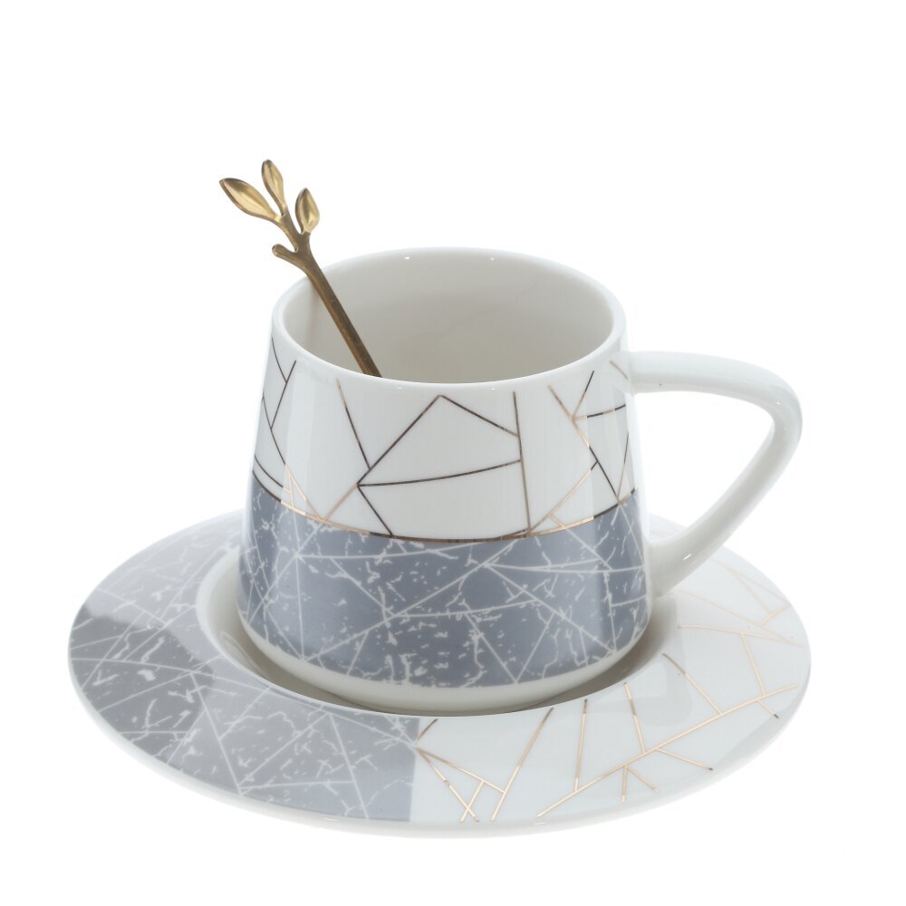 Кружка с блюдцем и ложкой, 200 мл, L15 W15 H8 см, 3в.