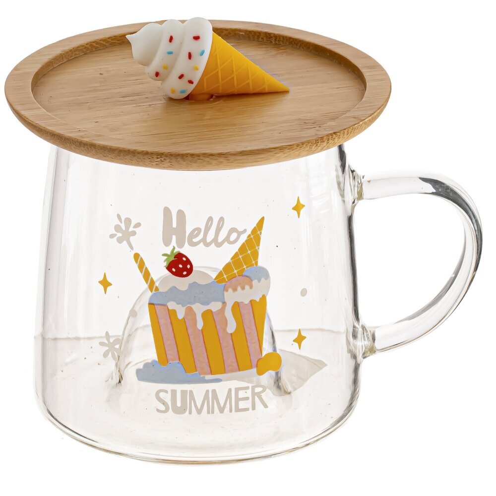 Кружка с крышкой, L6,6 W6,6 H12,8 см, дизайн микс