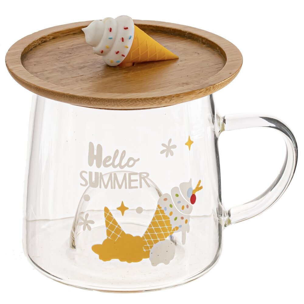 Кружка с крышкой, L6,6 W6,6 H12,8 см, дизайн микс