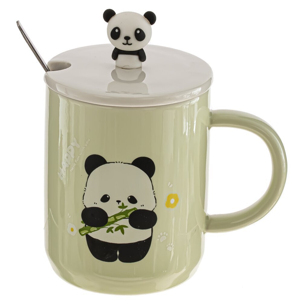 Кружка с крышкой и ложкой, 450 мл, L8 W8 H9 см