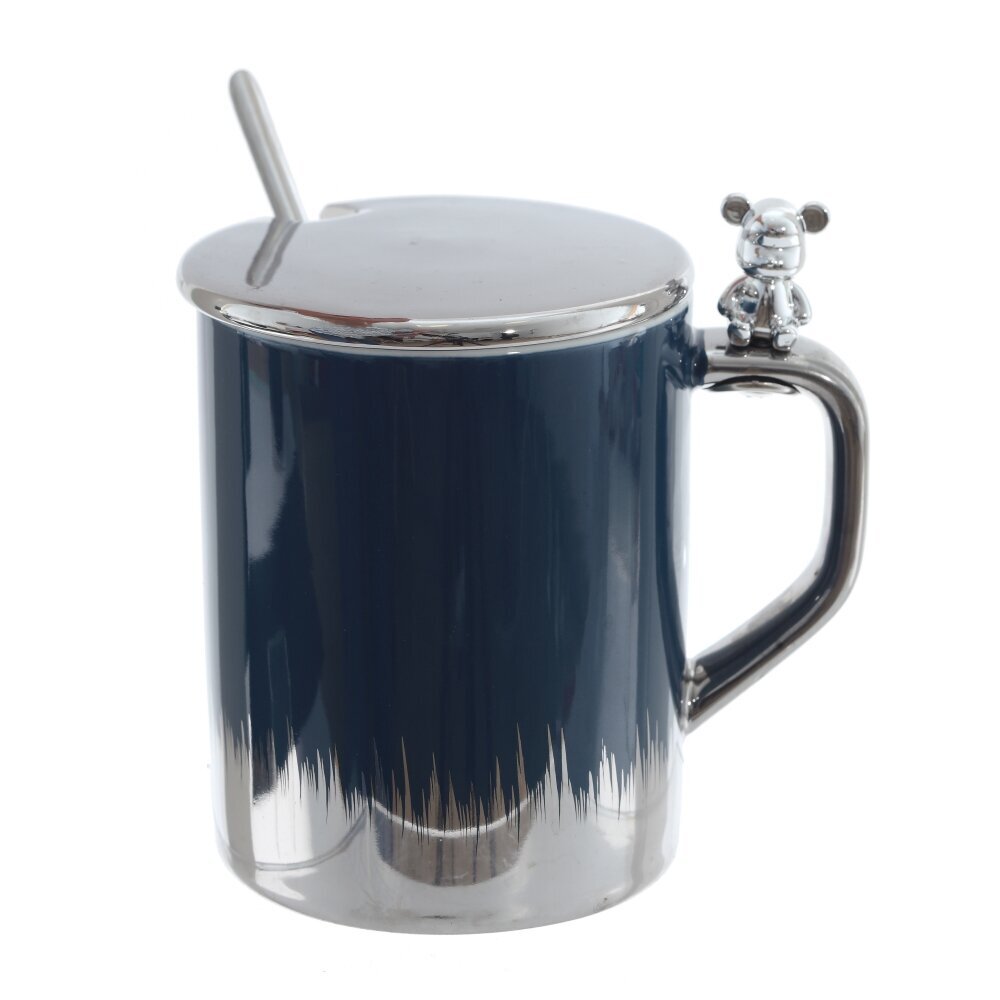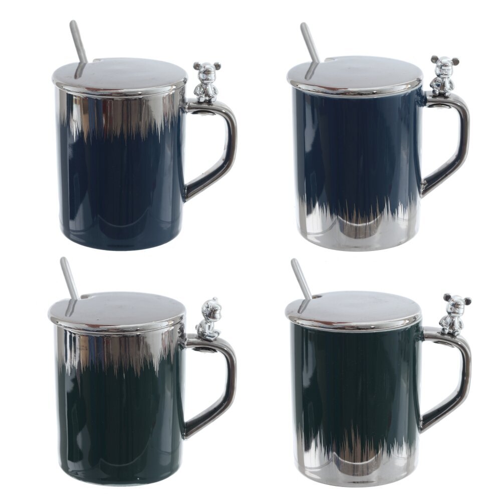 Кружка с крышкой и ложкой, 360 мл, L12 W9 H13 см, 4в.