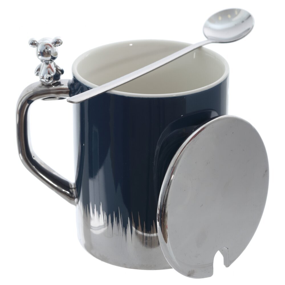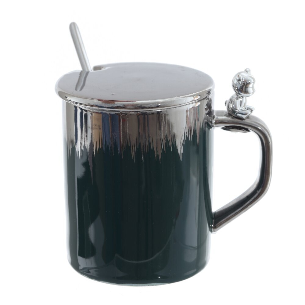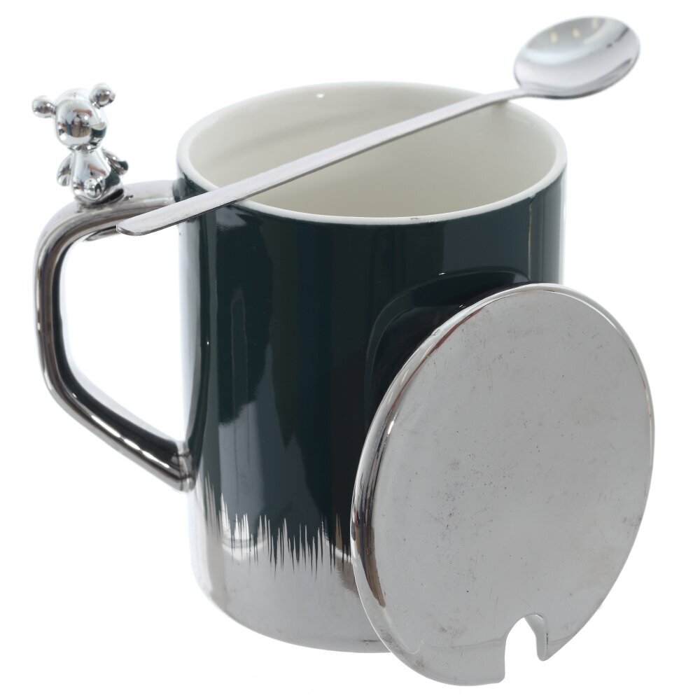 Кружка с крышкой и ложкой, 350 мл, L13 W9 H13 см