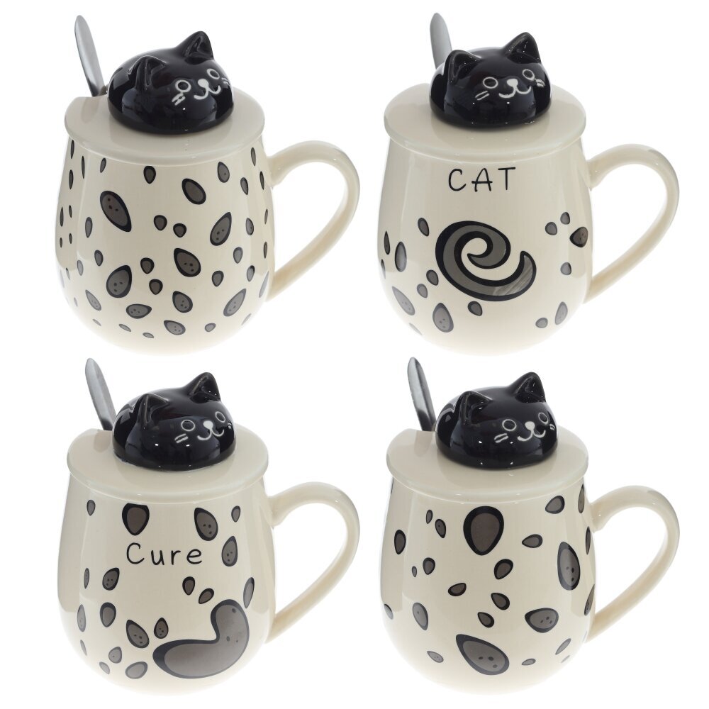 Кружка с крышкой и ложкой, 380 мл, L16 W11 H10 см, 4в.