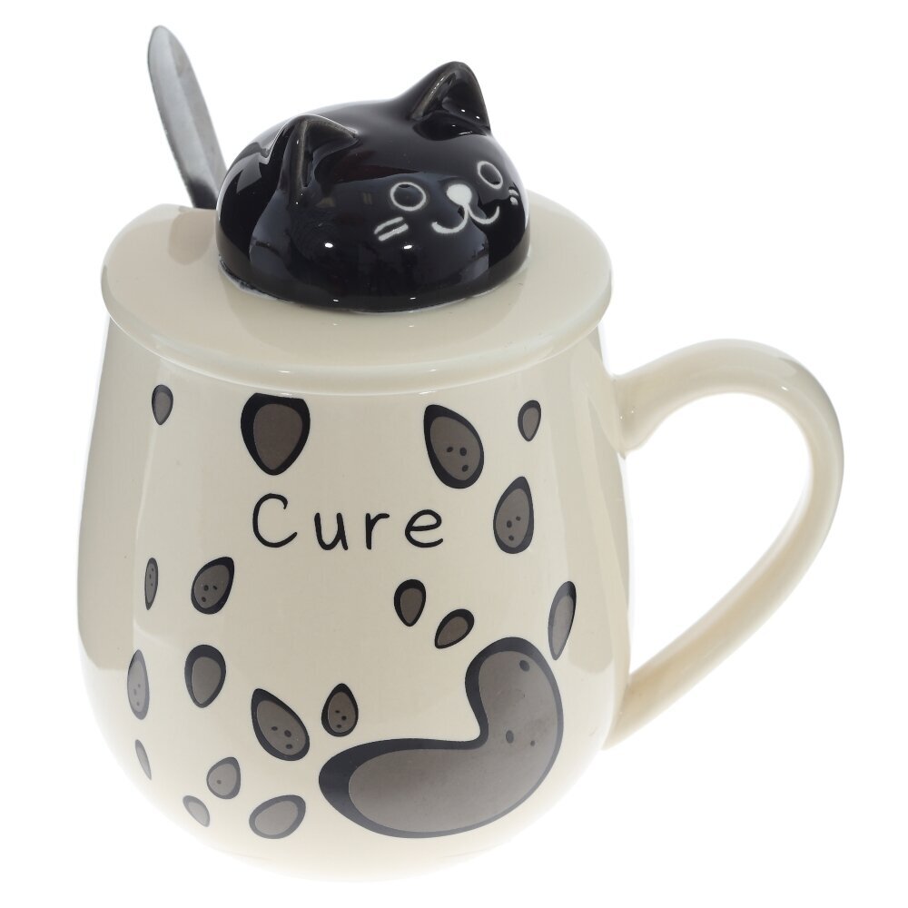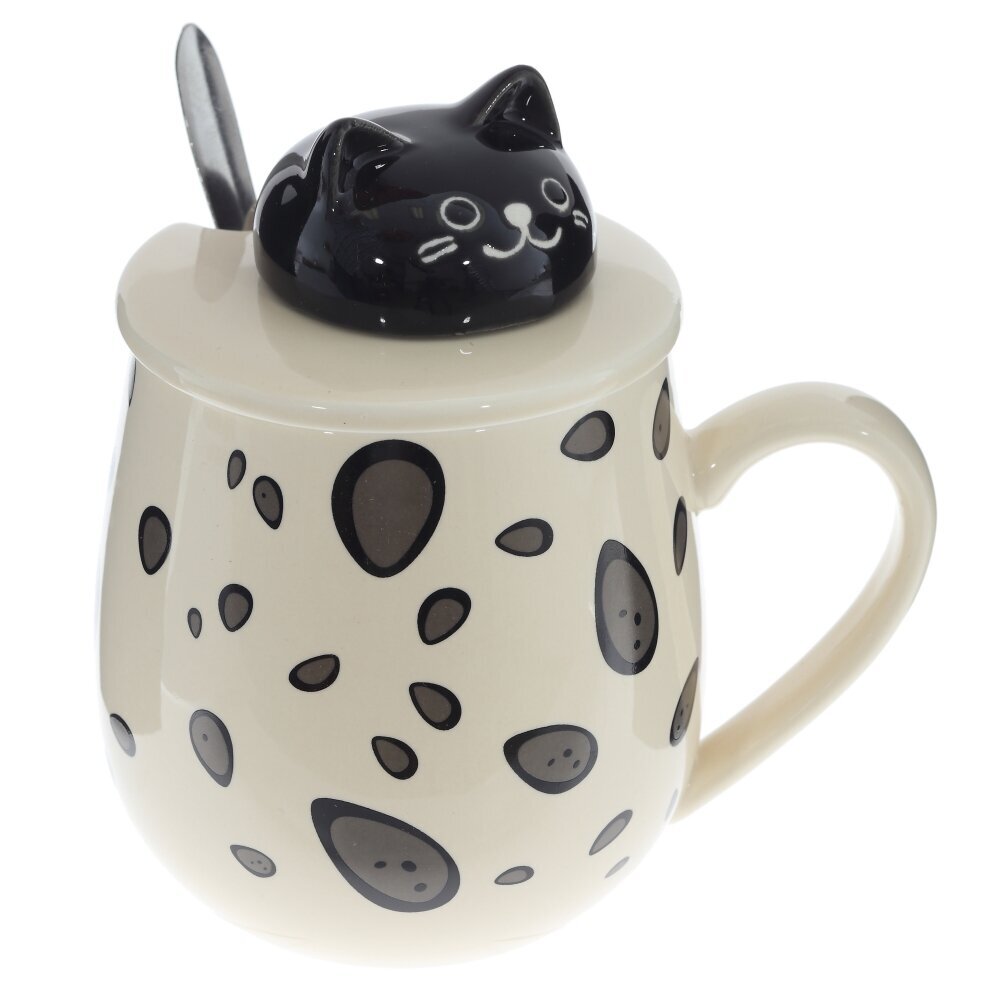 Кружка с крышкой и ложкой, 450 мл, L8 W8 H9 см