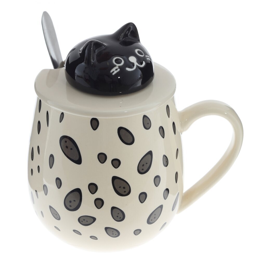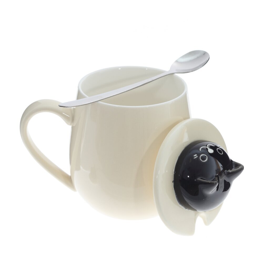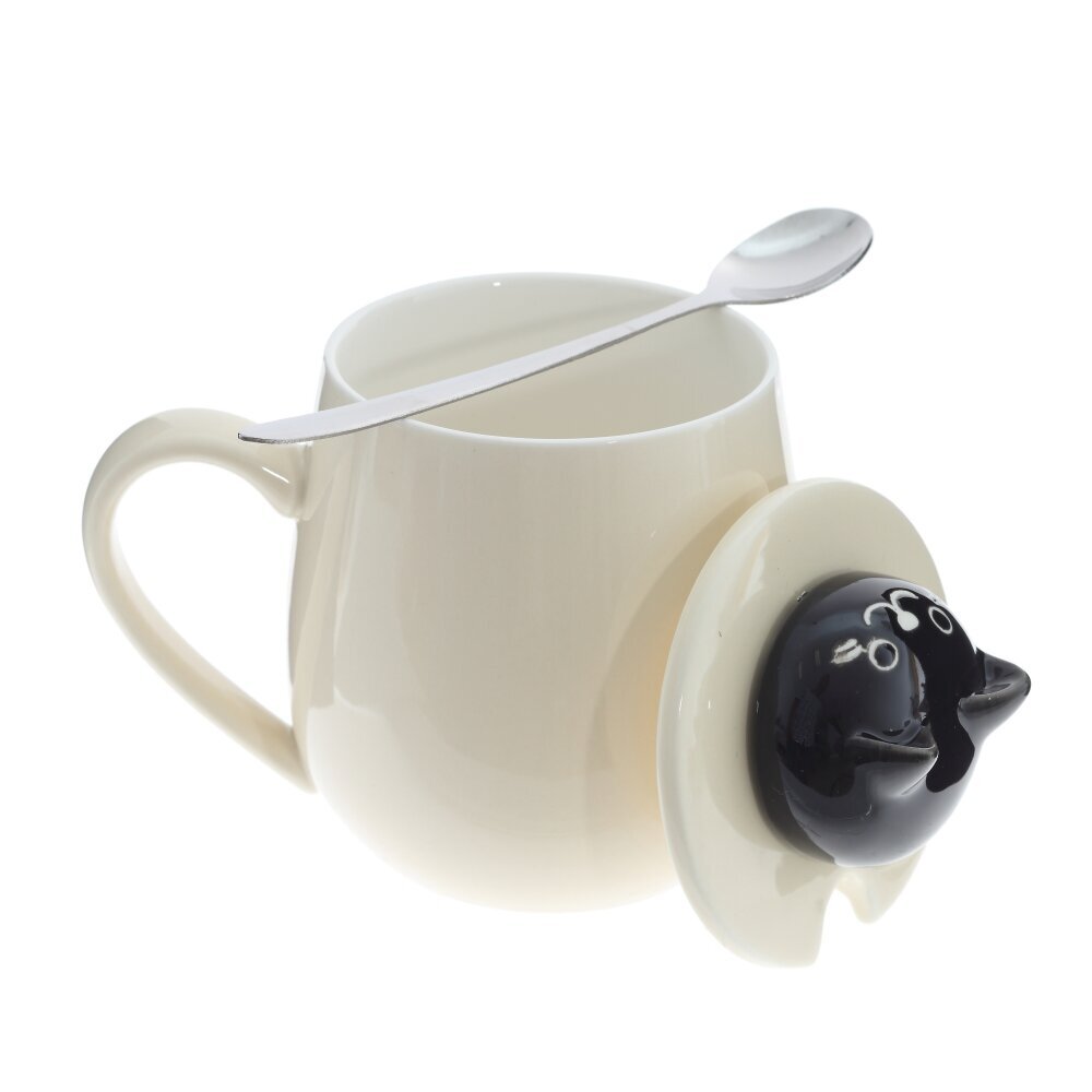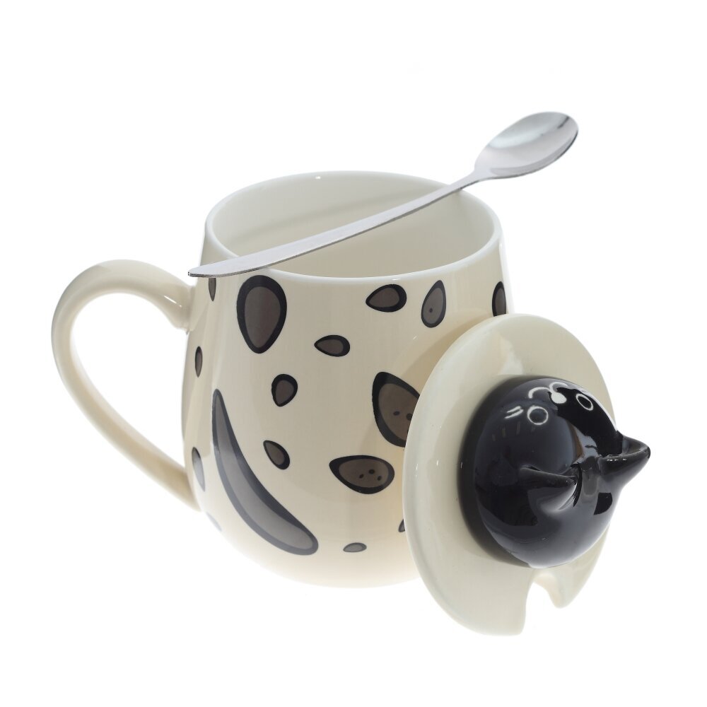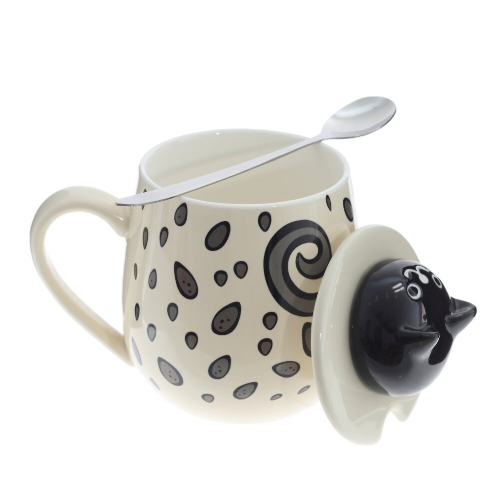 Кружка с крышкой и ложкой, 360 мл, L8 W8 H9 см