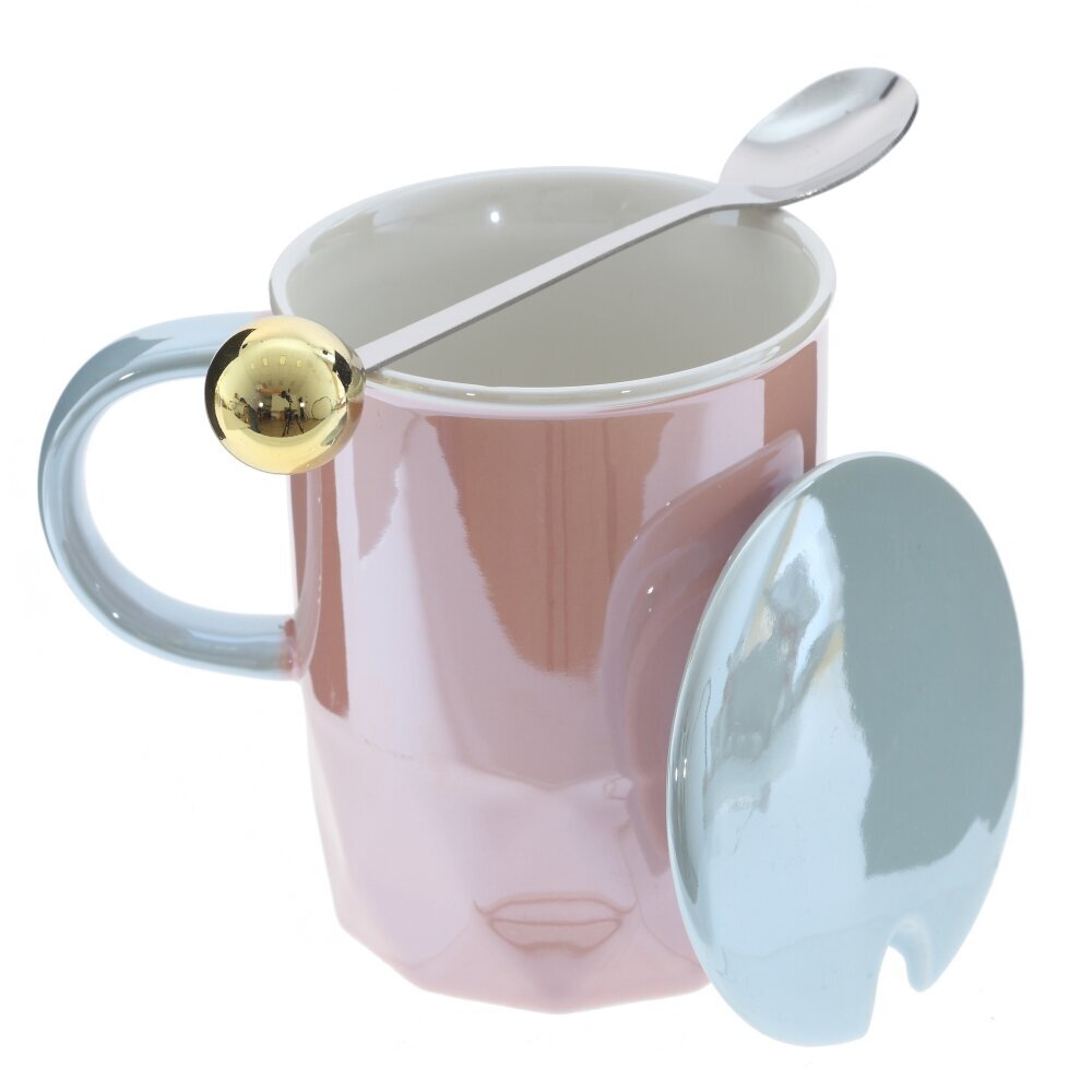 Кружка с крышкой и ложкой, 400 мл, L12 W8,5 H13 см