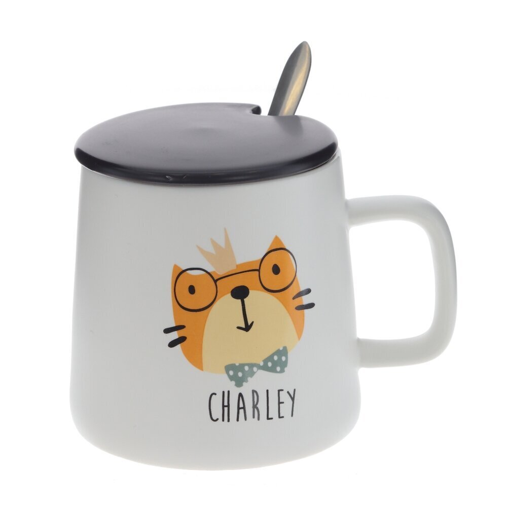 Кружка с крышкой и ложкой, 450 мл, L8 W8 H9 см