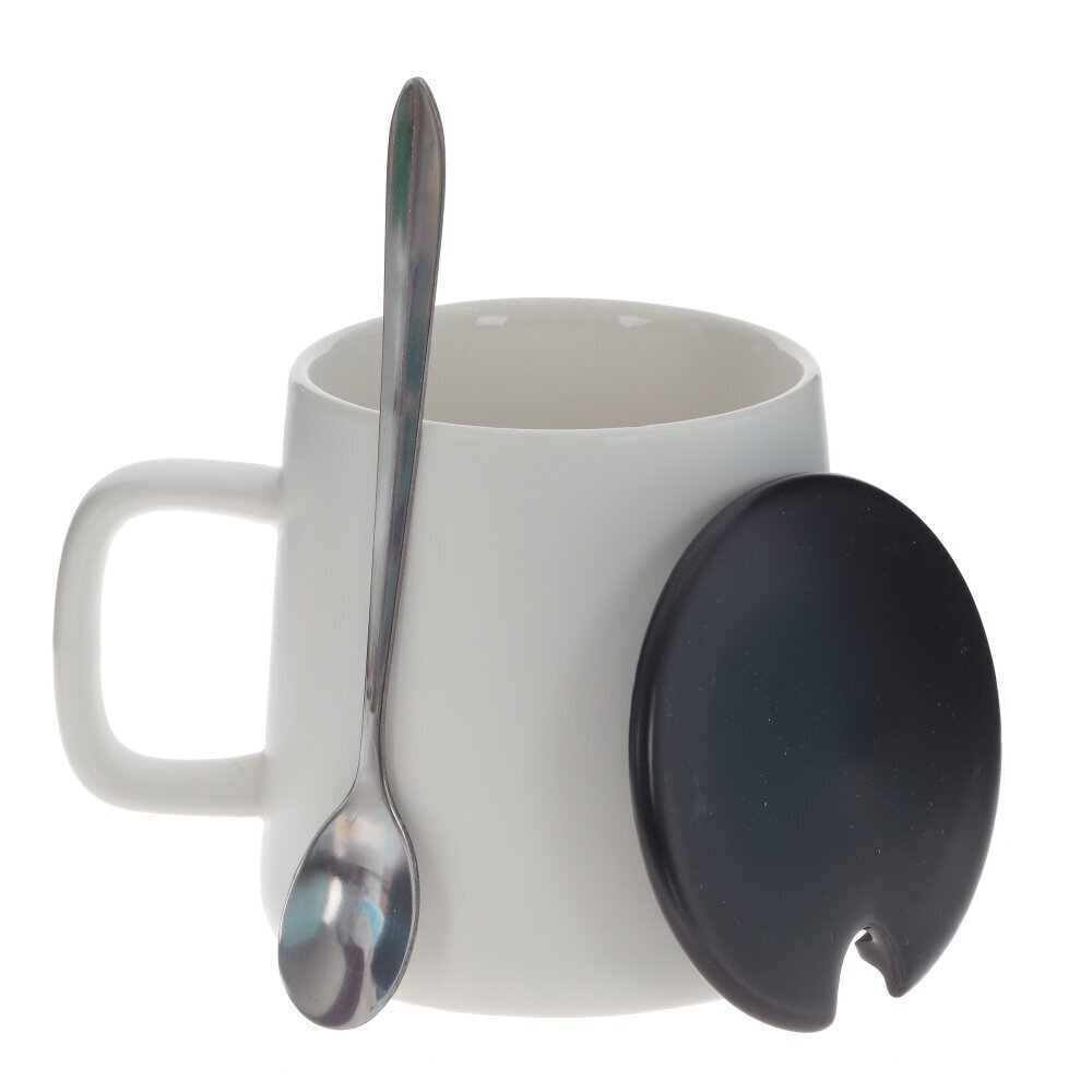 Кружка с крышкой и ложкой, 400 мл, L12 W8,5 H13 см