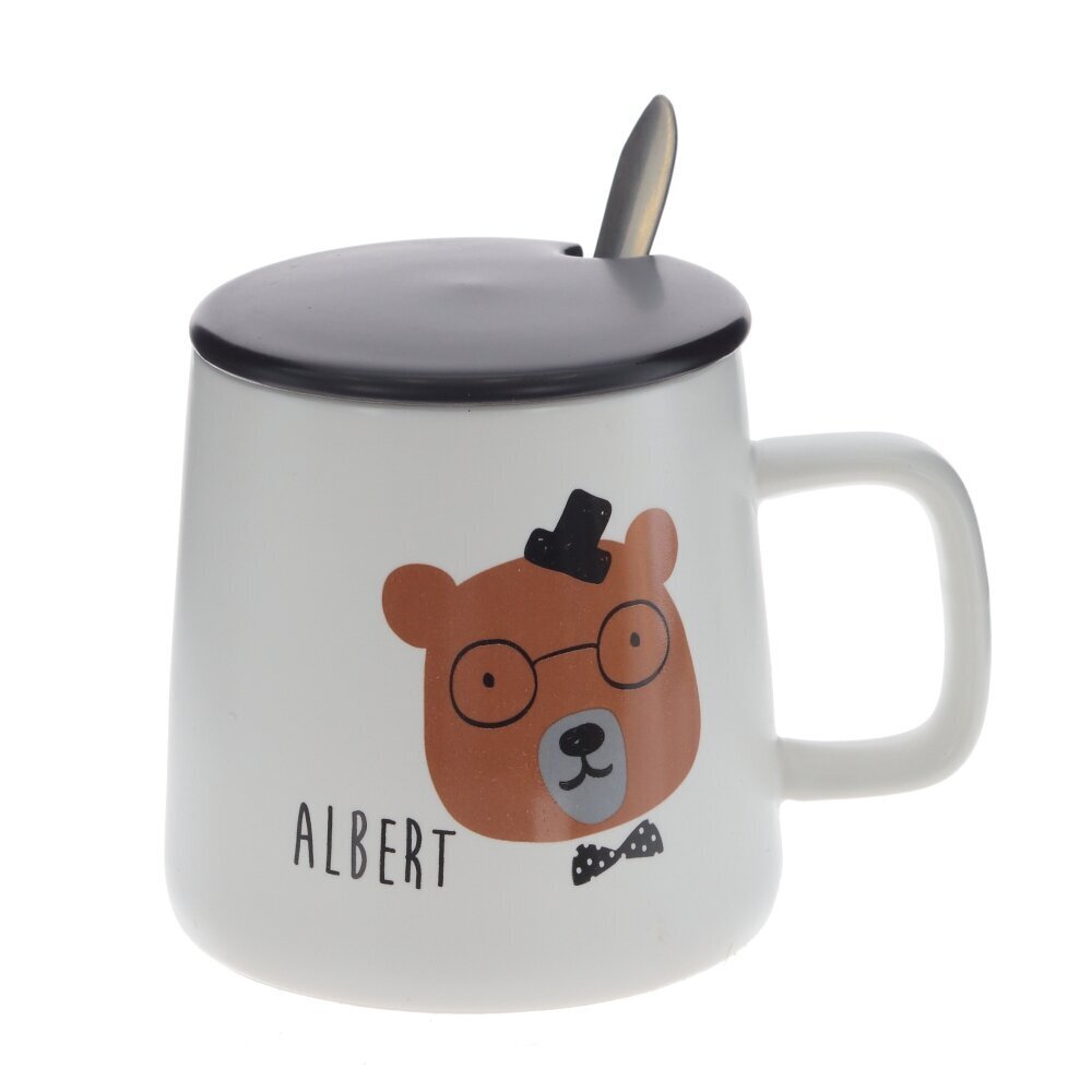 Кружка с крышкой и ложкой, 400 мл, L12 W9 H9 см