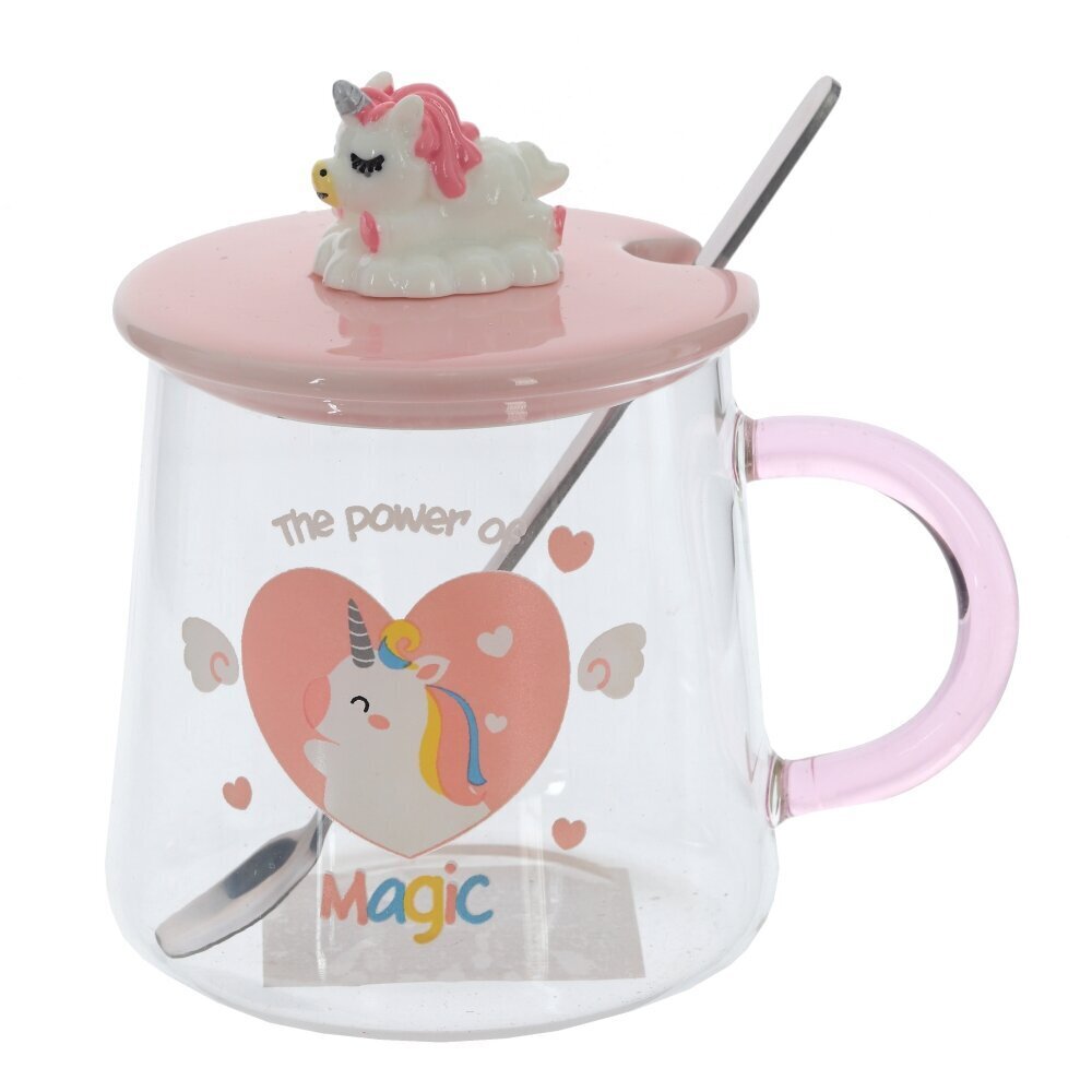 Кружка с крышкой и ложкой, 450 мл, L8 W8 H9 см