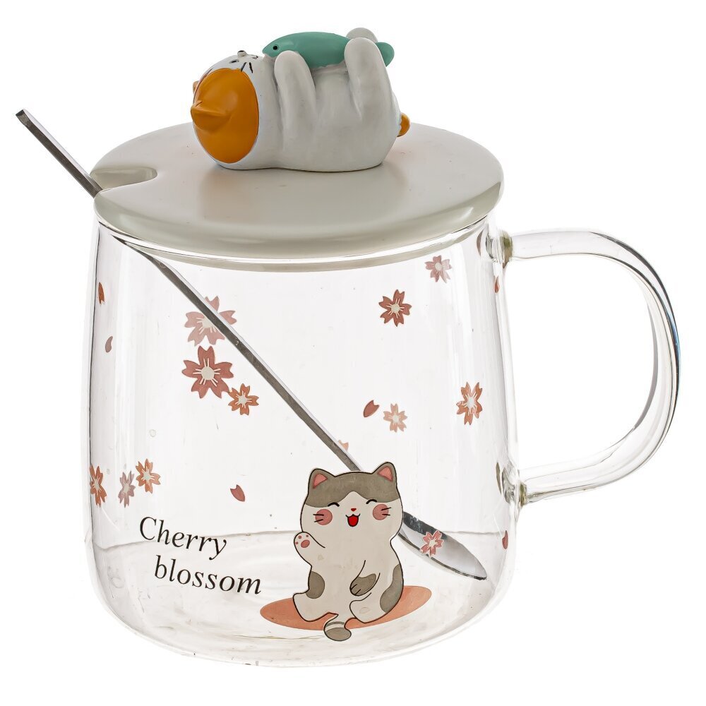 Кружка с крышкой и ложкой 420 мл, L8 W8 H9 см