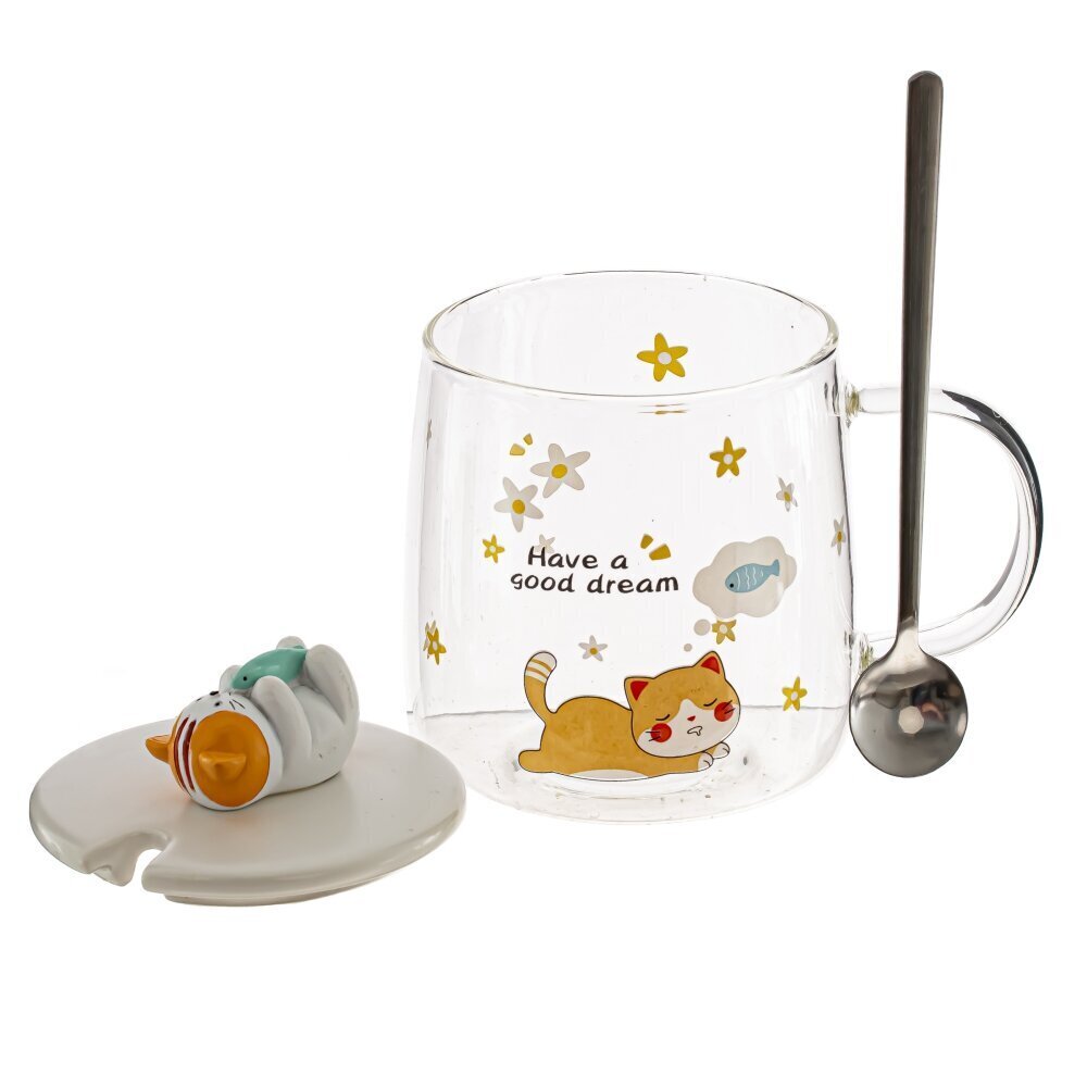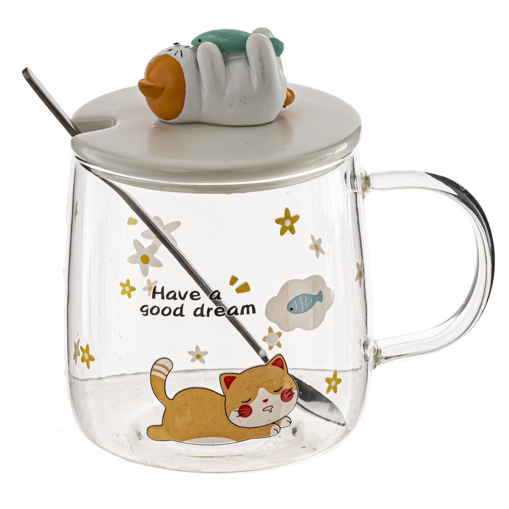 Кружка с крышкой и ложкой 420 мл, L8 W8 H9 см