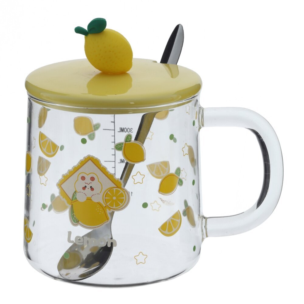 Кружка с крышкой и ложкой, 300 мл, L14 W9 H11 см, 4в.