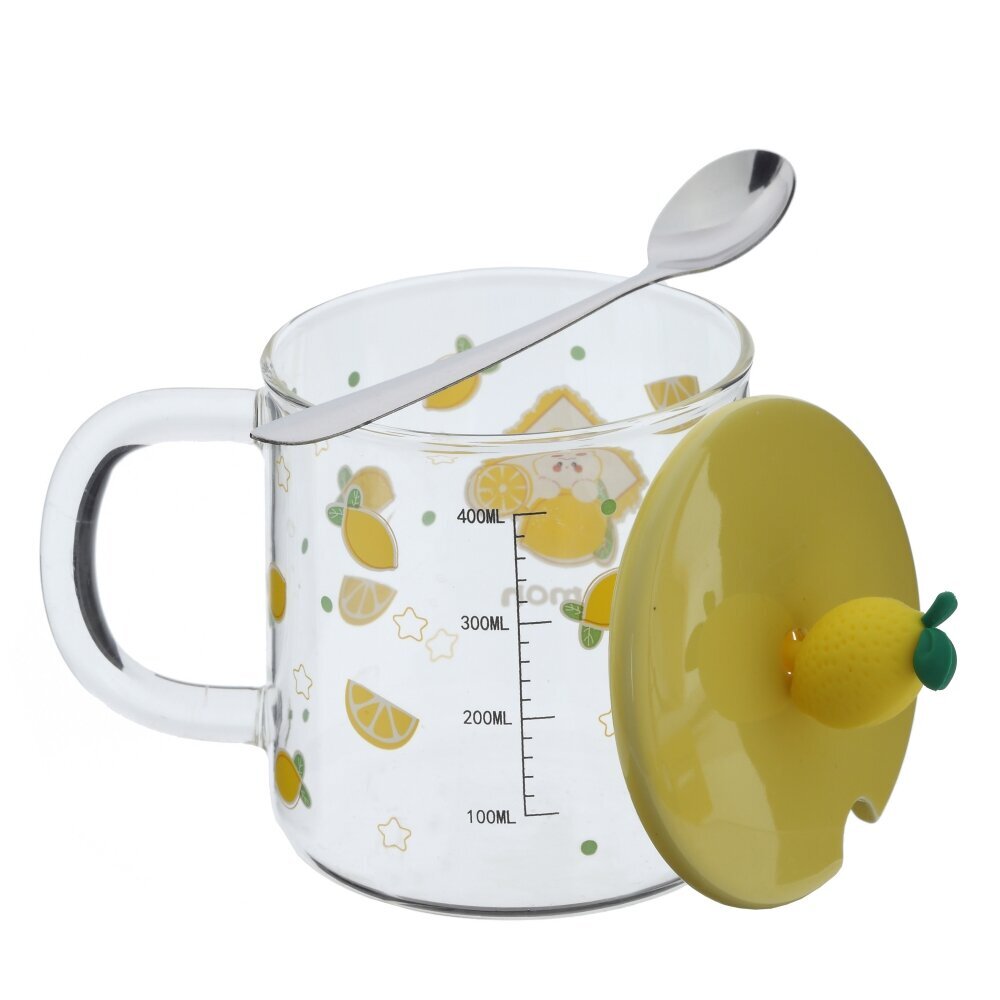 Кружка с крышкой и ложкой, 450 мл, L8 W8 H9 см