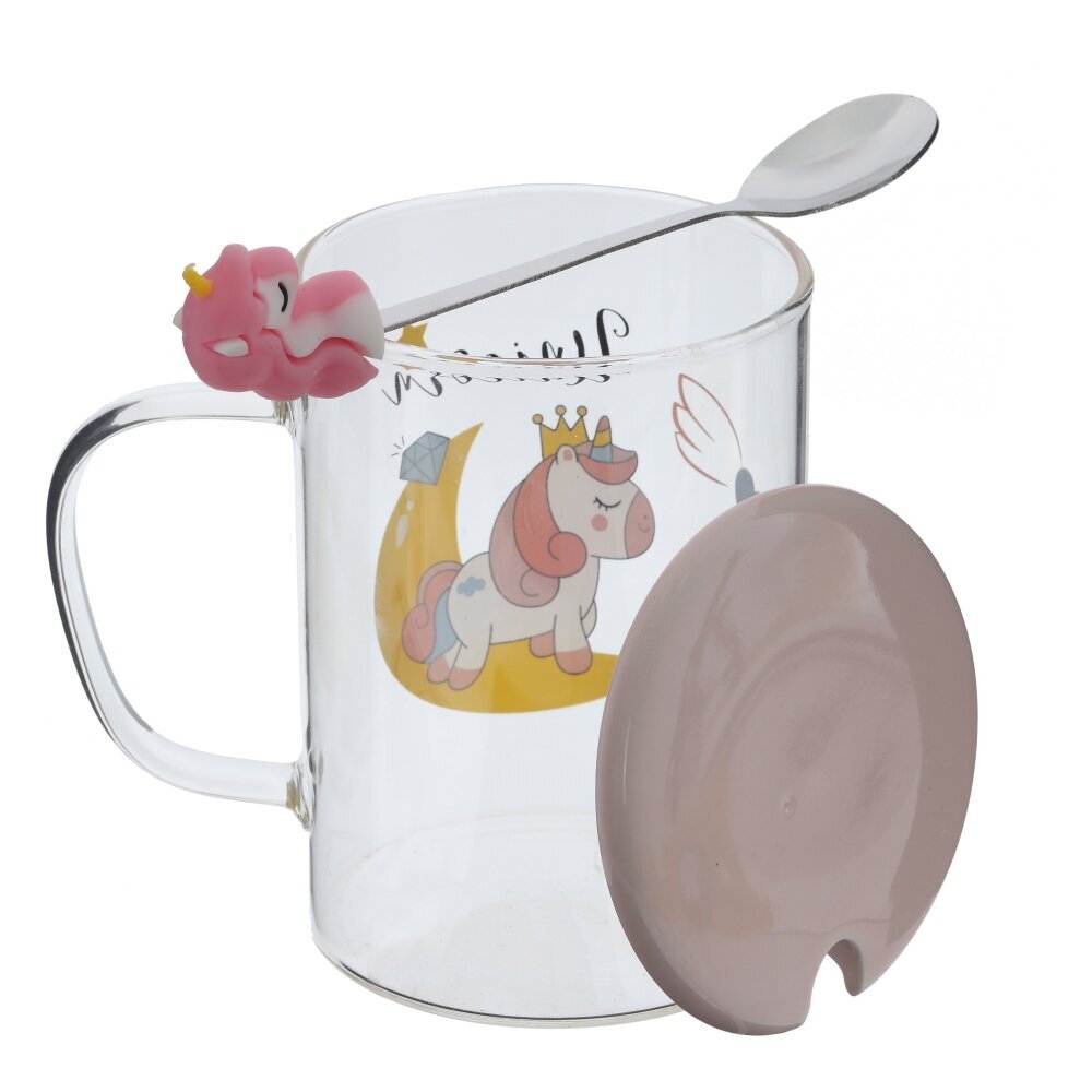 Кружка с крышкой и ложкой 450 мл, L8 W8 H11 см