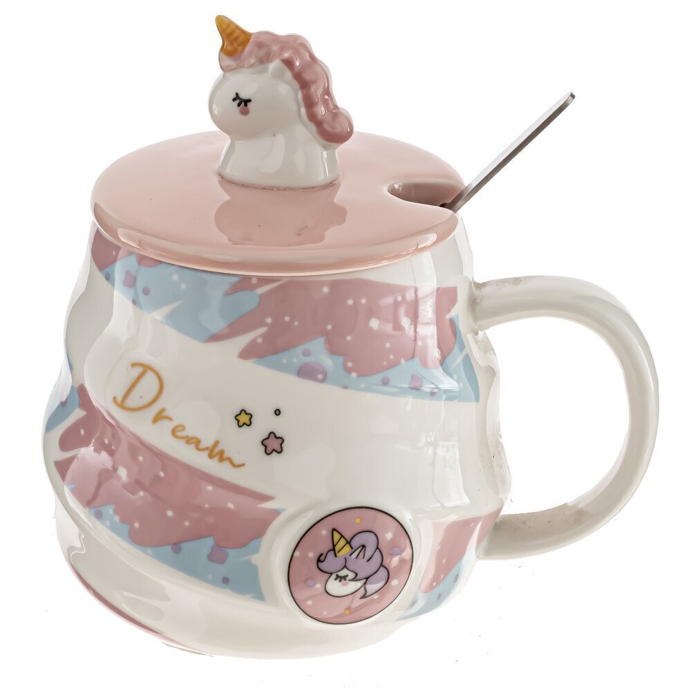 Кружка с крышкой и ложкой, 400 мл, L12 W8,5 H13 см