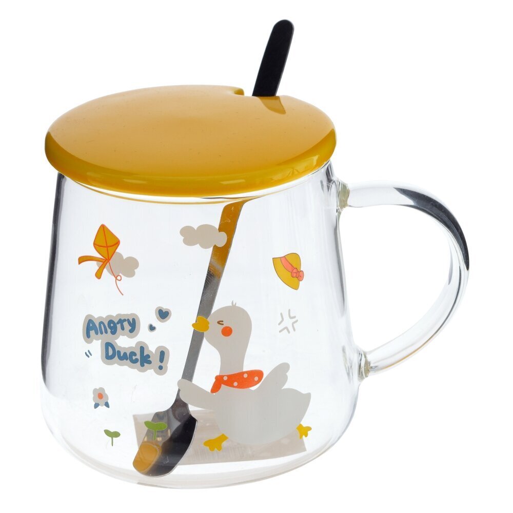 Кружка с крышкой и ложкой, 450 мл, L14 W9 H12 см, 2в.