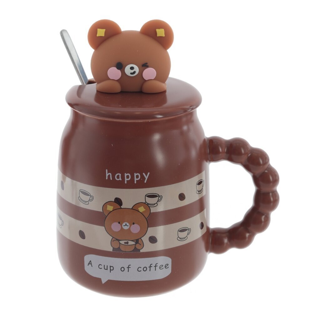 Кружка с крышкой и ложкой, 450 мл, L8 W8 H9 см