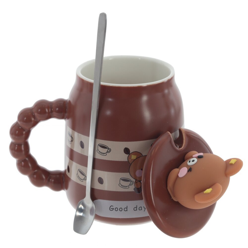 Кружка с крышкой и ложкой, 380 мл, L16 W11 H10 см, 4в.