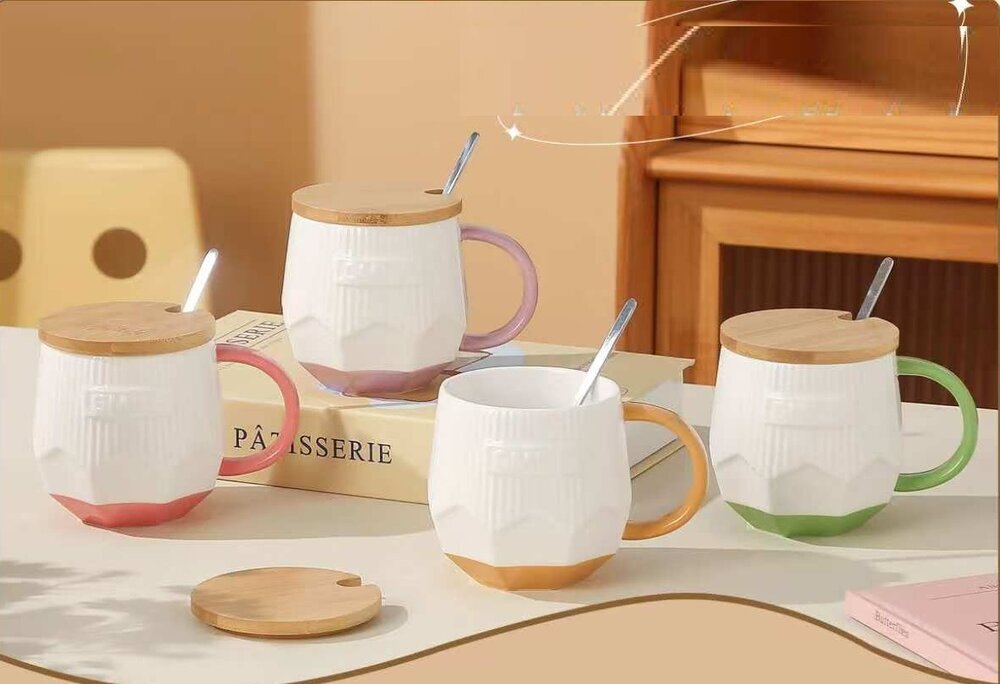 Кружка с крышкой и ложкой, L8,2 W8,2 H9 см, цвет микс