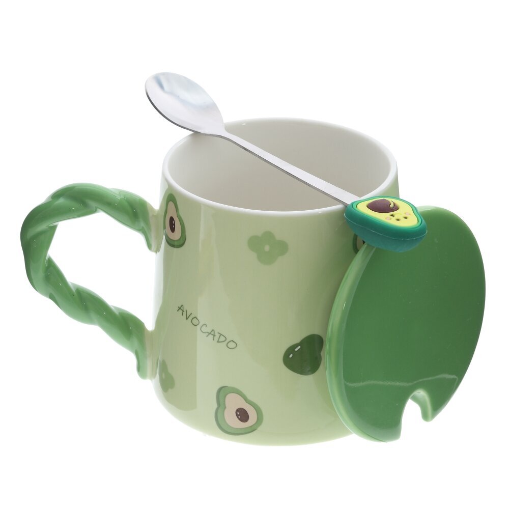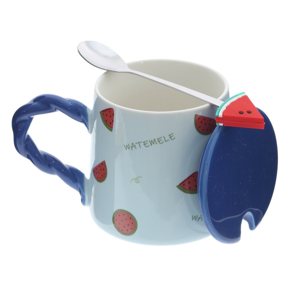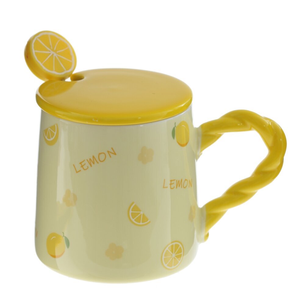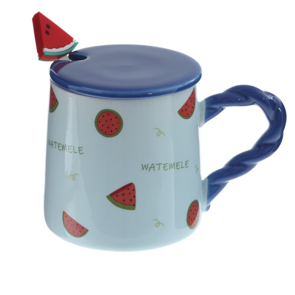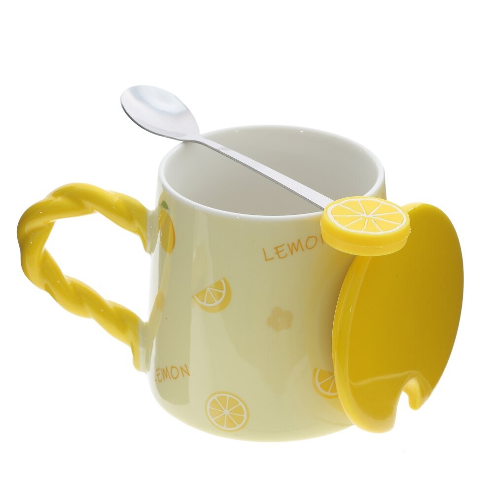 Кружка с крышкой и ложкой 450 мл, L8 W8 H11 см
