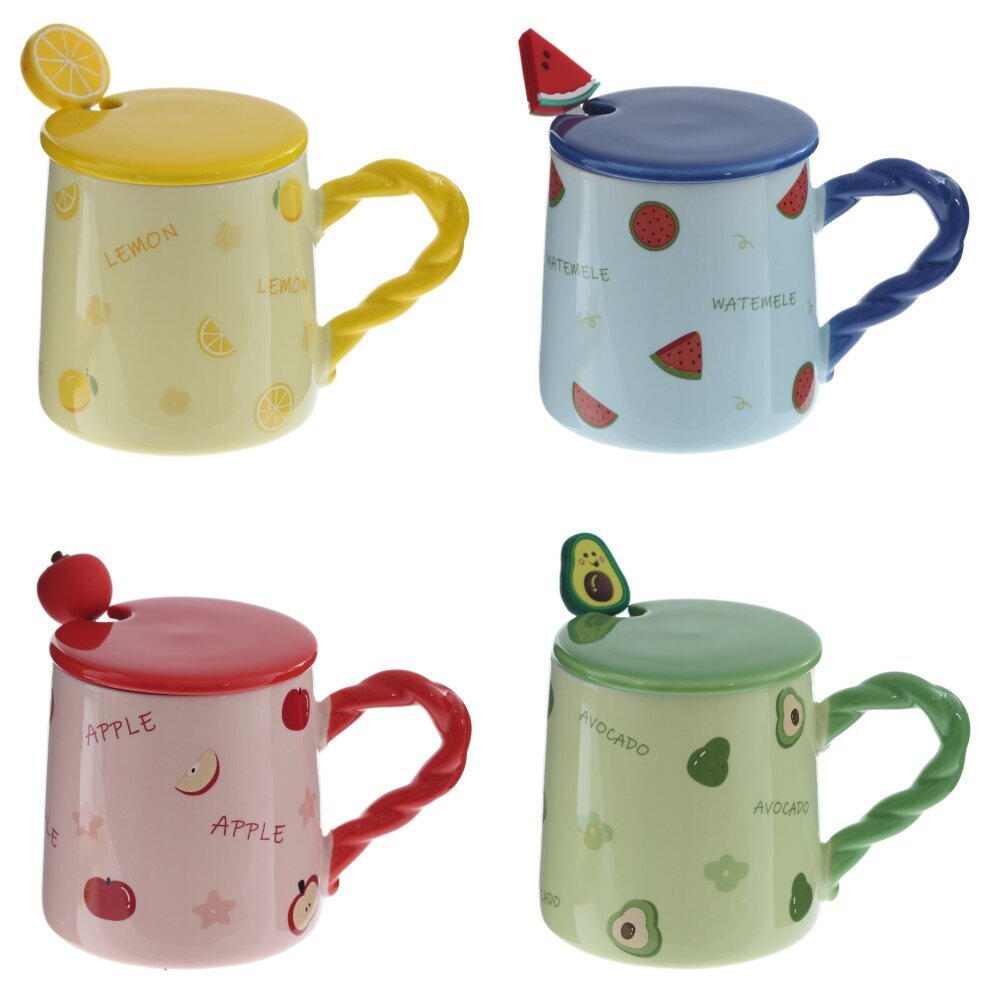 Кружка с крышкой, L7,5 W7,5 H11 см, дизайн микс