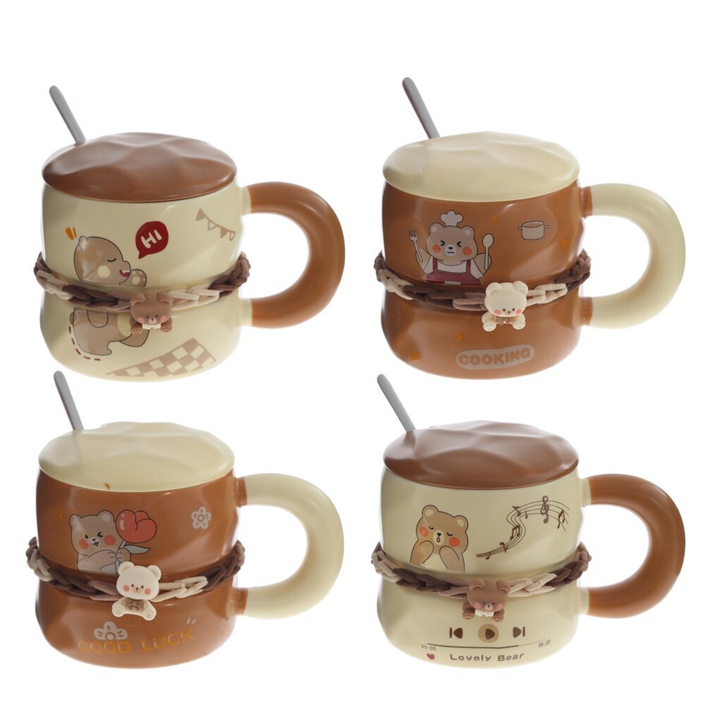 Кружка с ложкой, 350 мл, L12 W9,5 H11 см, дизайн микс