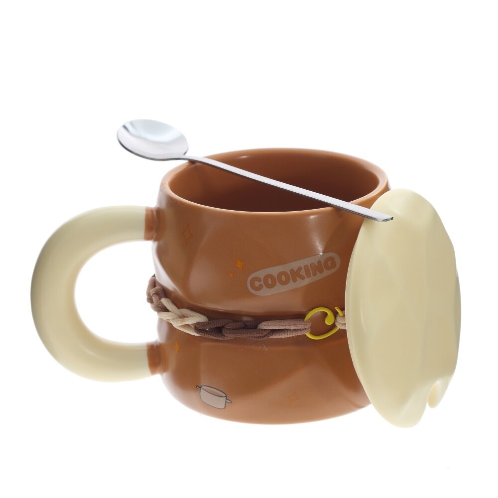 Кружка с крышкой и ложкой, L8,8 W8,8 H8,5 см, дизайн микс