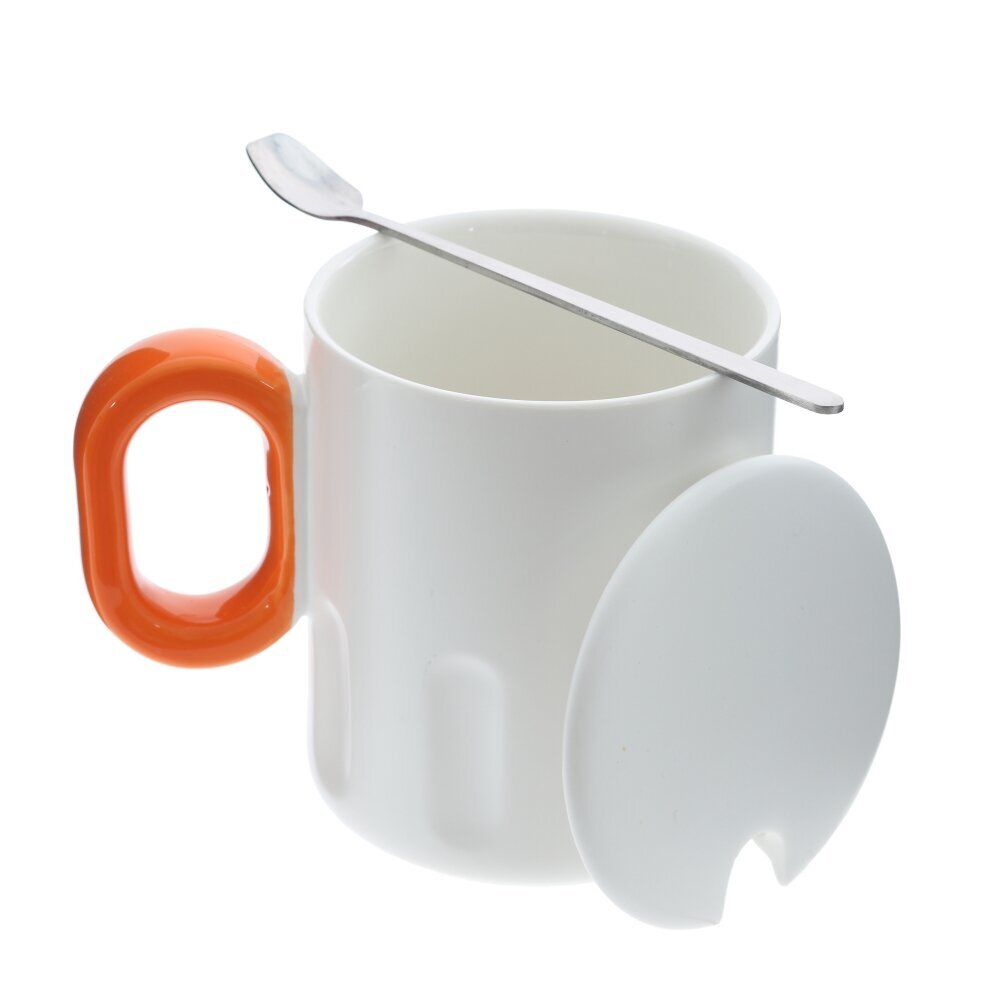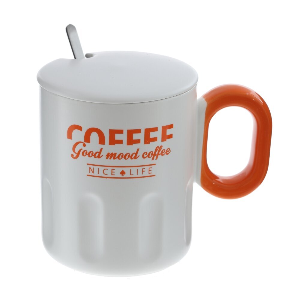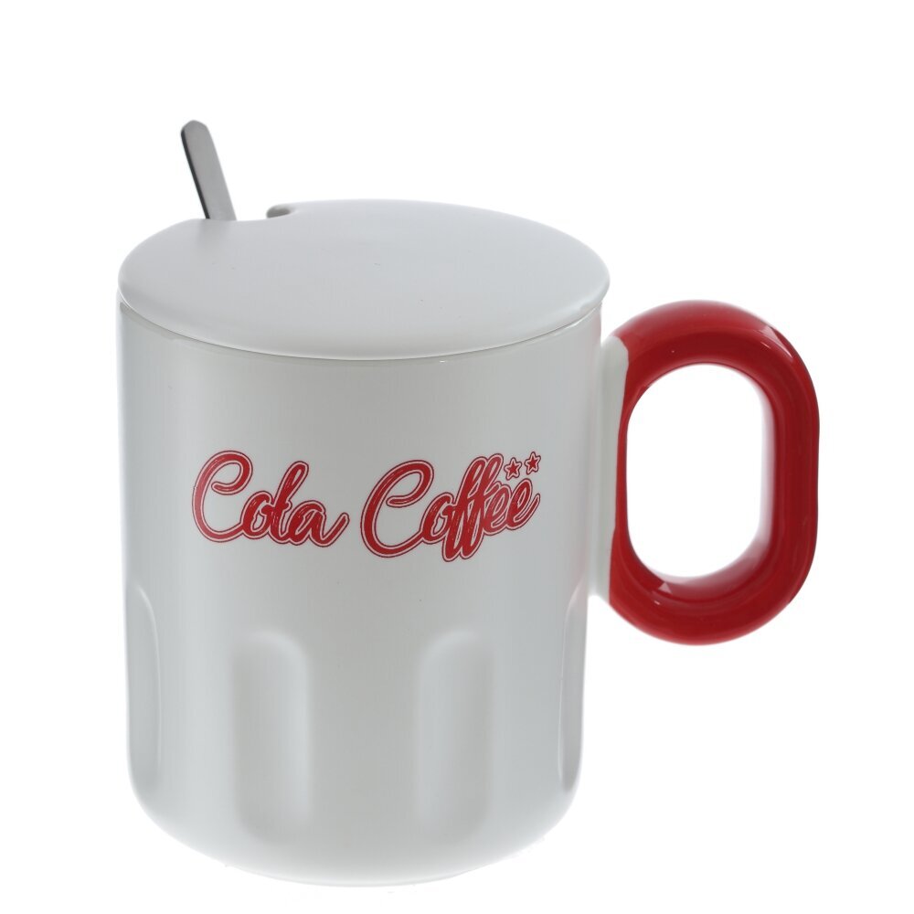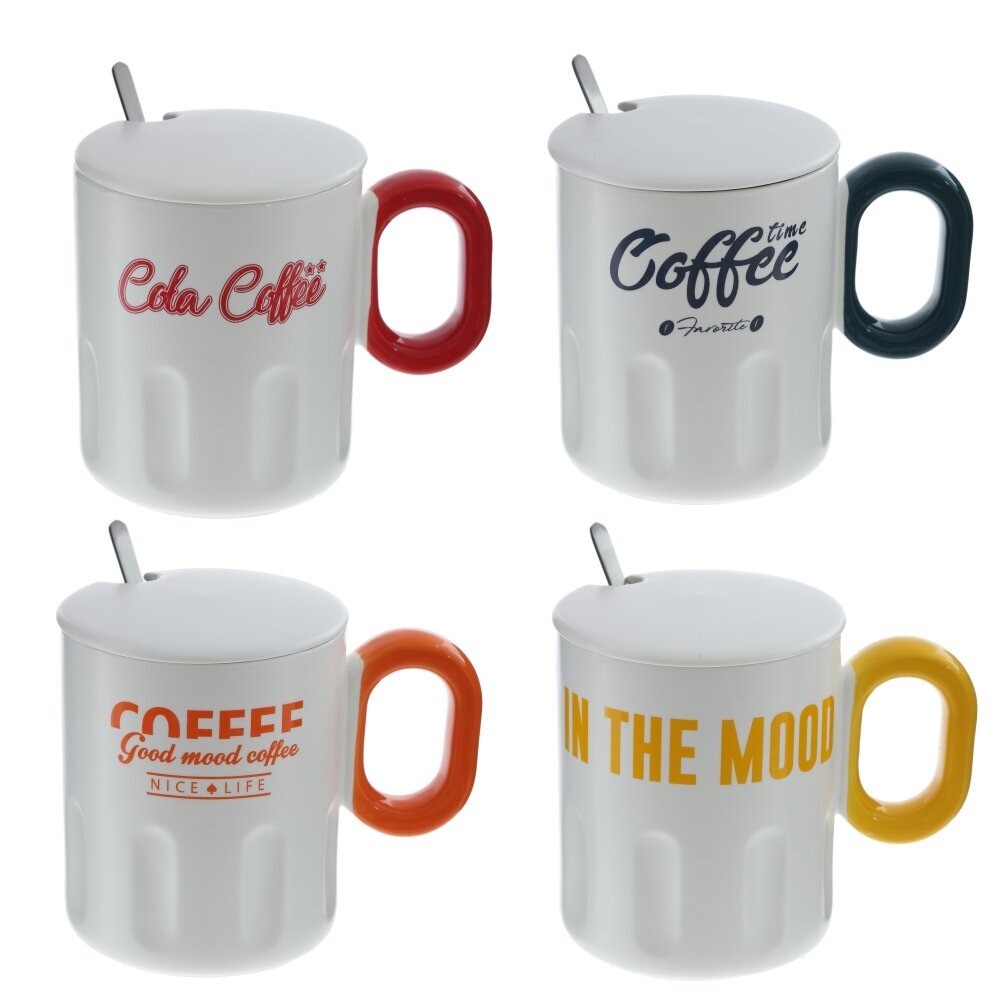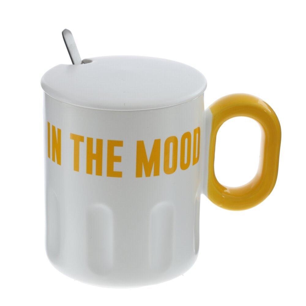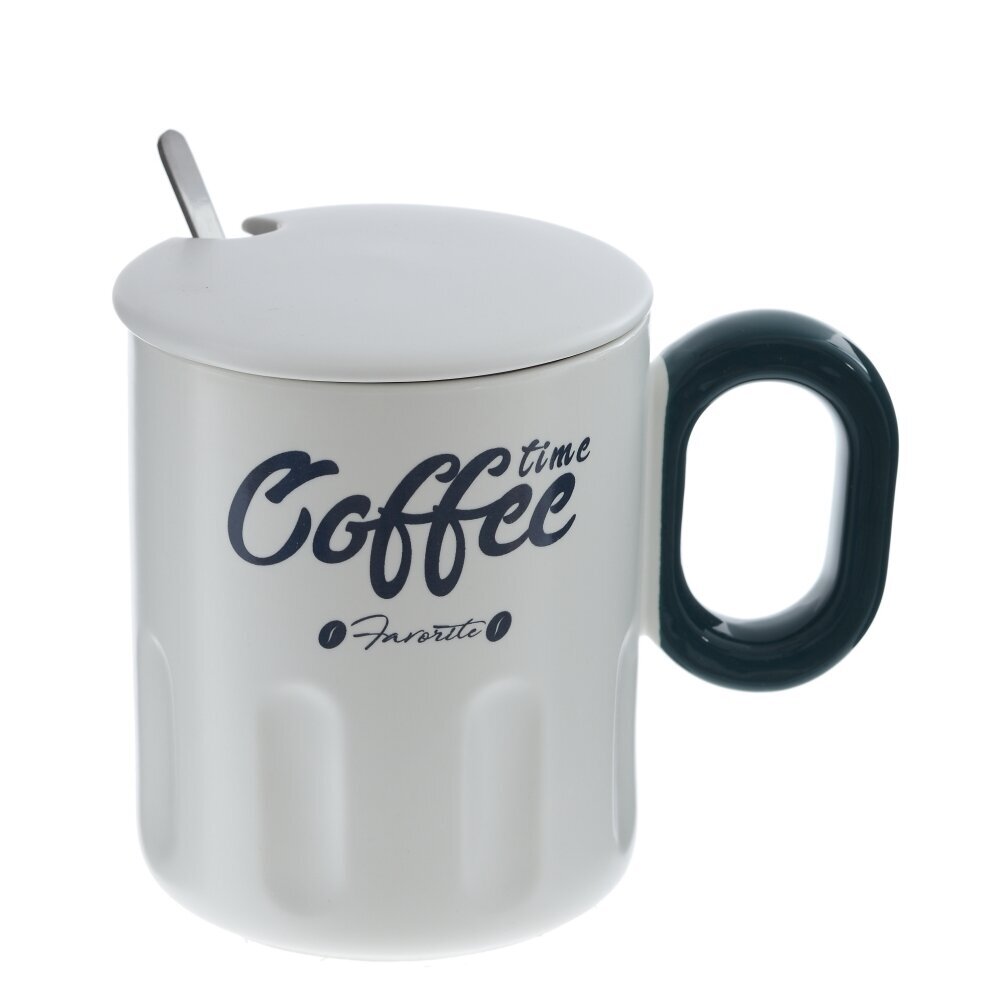 Кружка с крышкой и ложкой, L8,9 W8,9 H10,5 см, дизайн микс