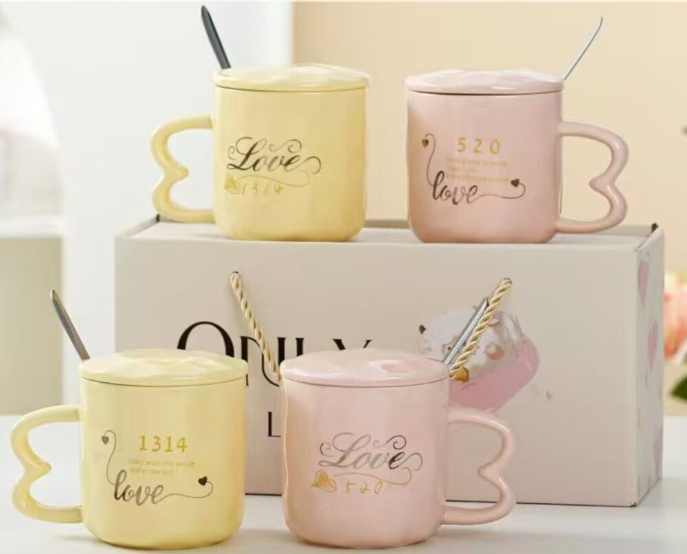 Кружка с крышкой и ложкой, L9 W9 H9 см, дизайн микс