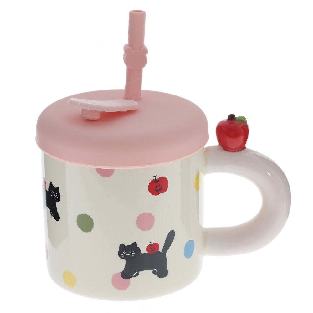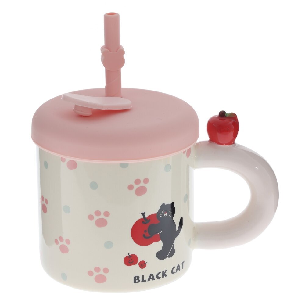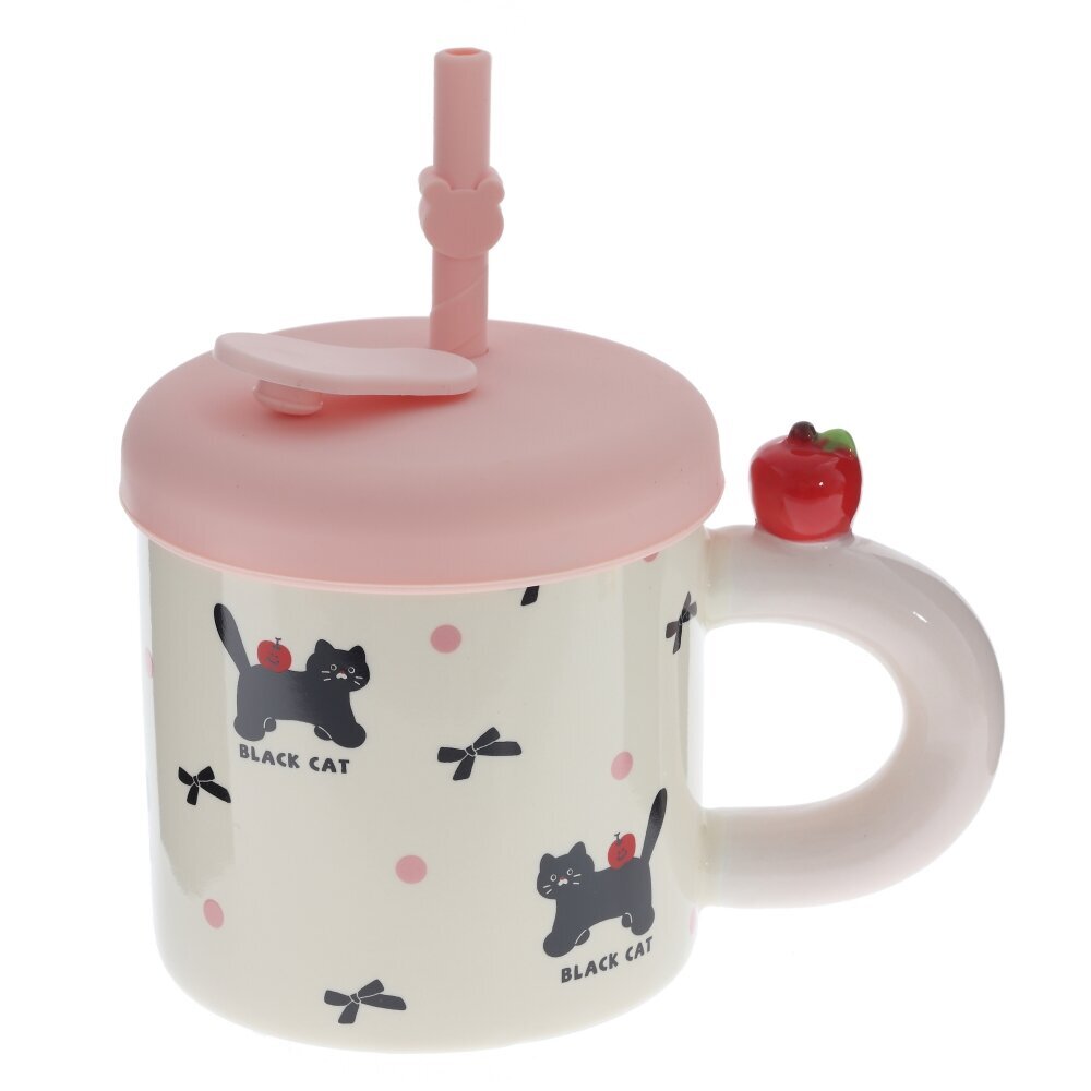 Кружка с крышкой и трубочкой, 390 мл, L14 W10 H13 см