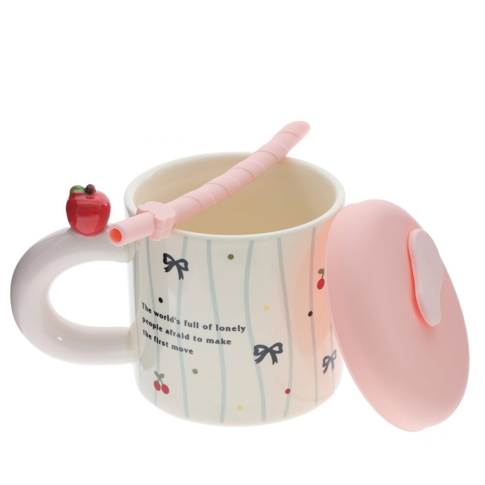 Кружка с крышкой и ложкой, 400 мл, L12 W8,5 H13 см