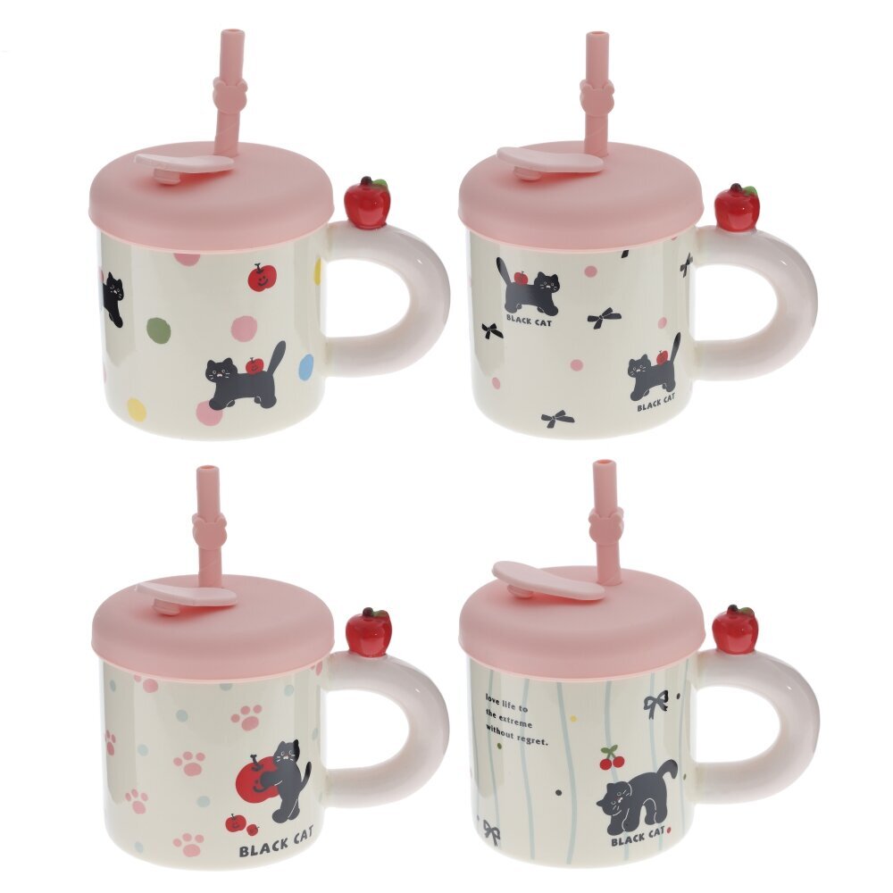 Кружка с крышкой и трубочкой, 330 мл, L14 W9 H14 см, 4в.