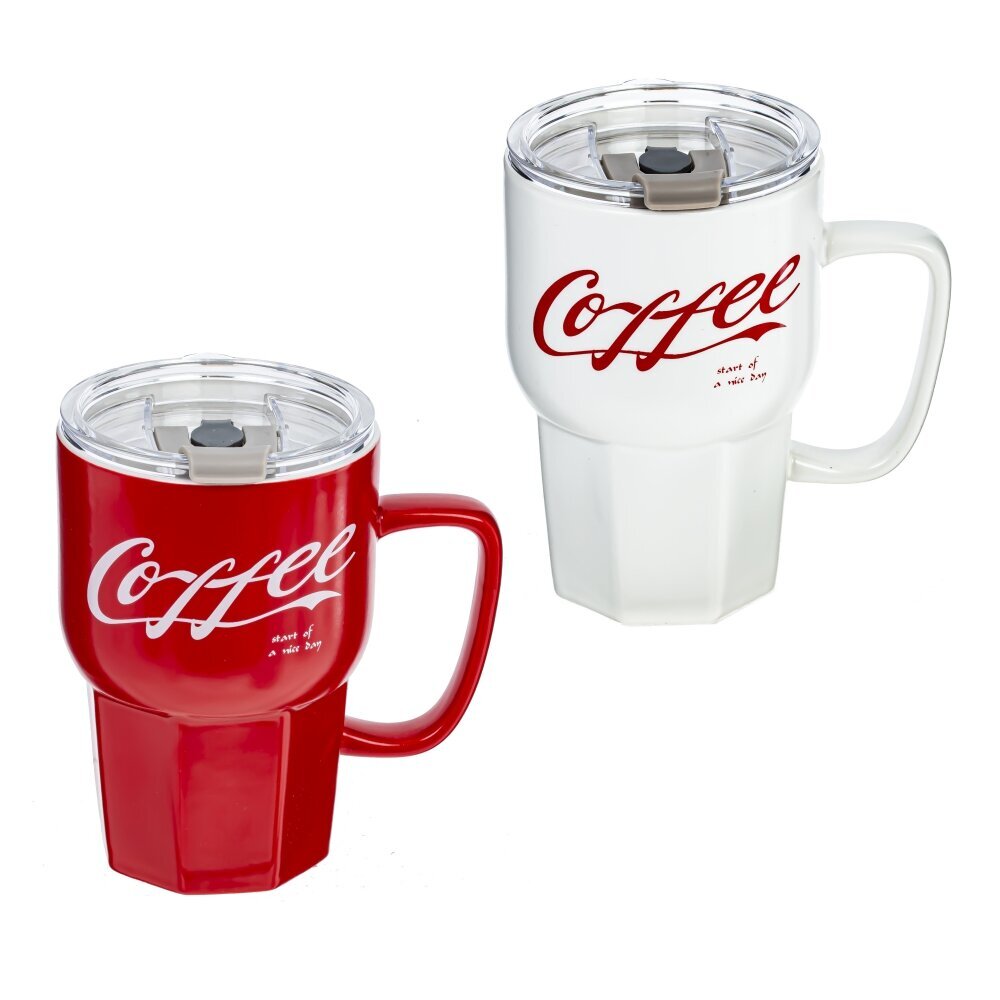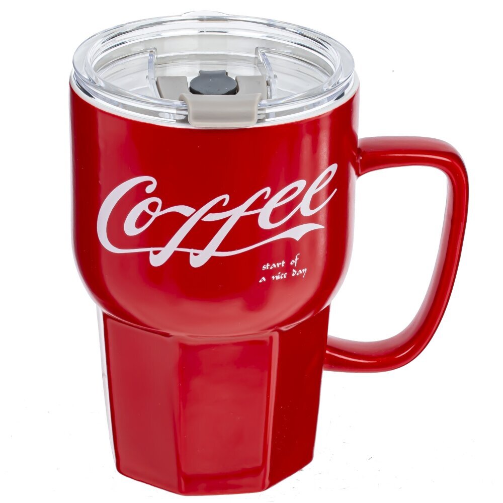 Кружка с крышкой, 390 мл, L10,5 W8 H13 см