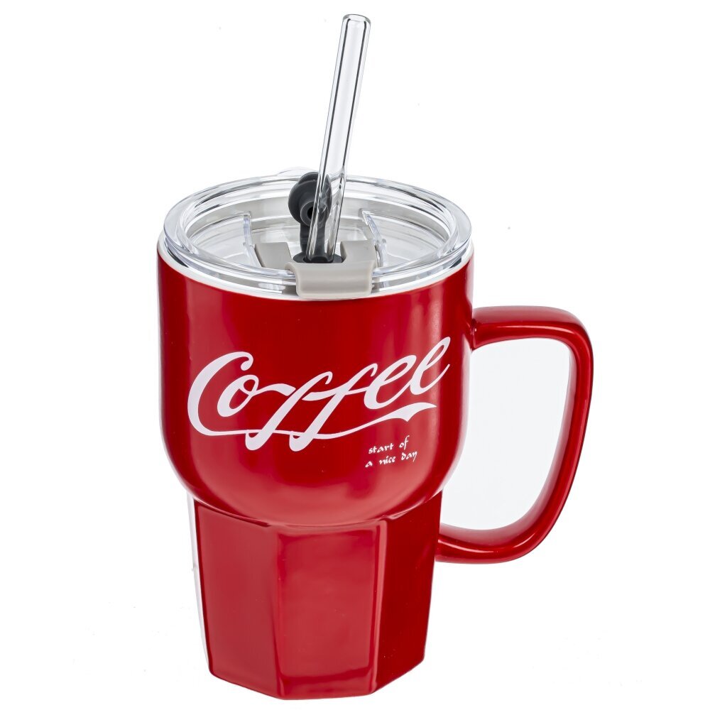Кружка с крышкой и трубочкой, 400 мл, L13 W9 H19,5 см, 2в.